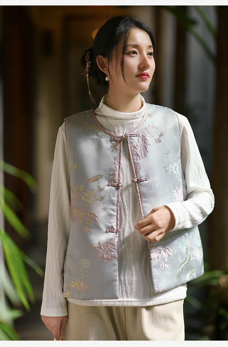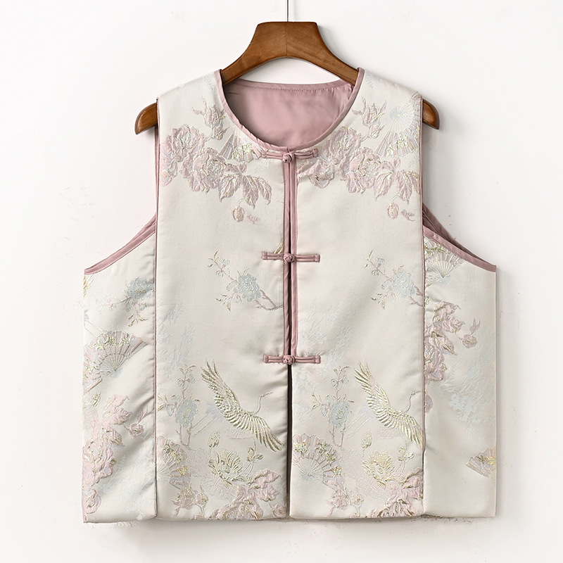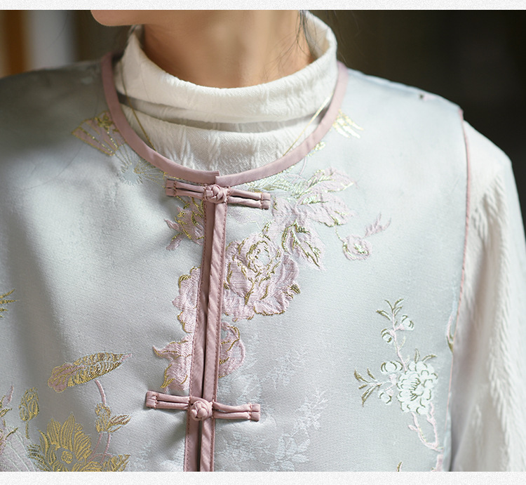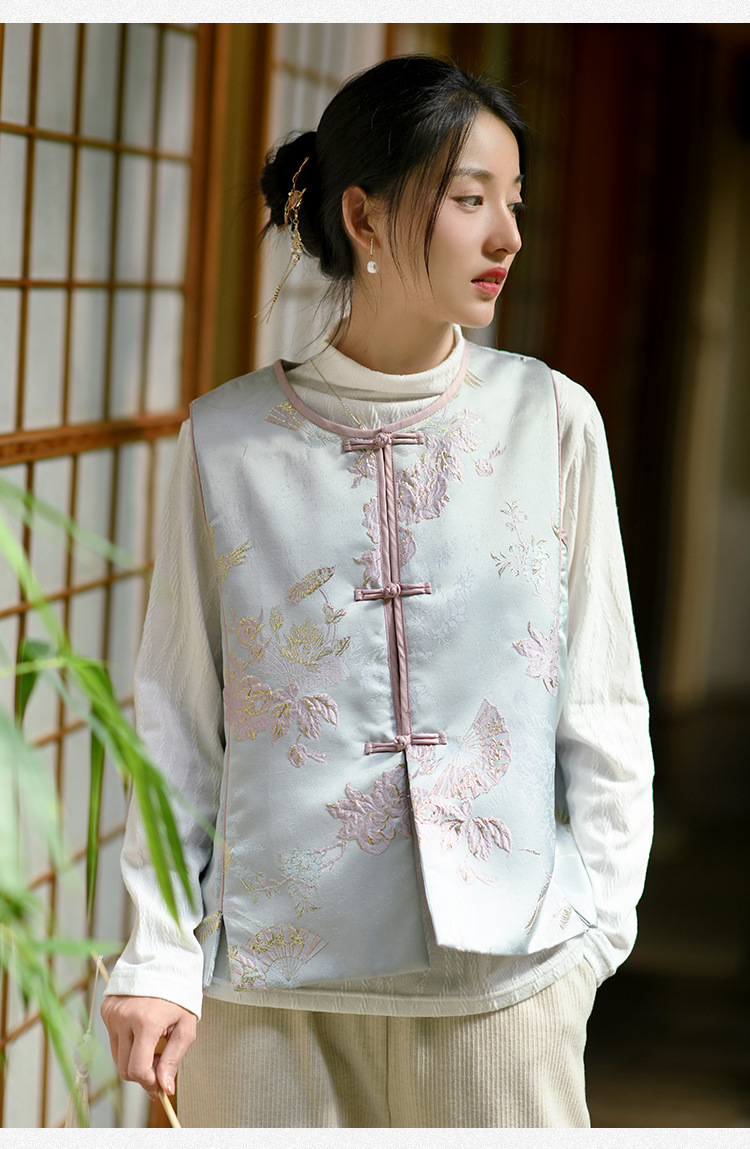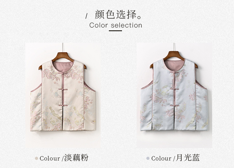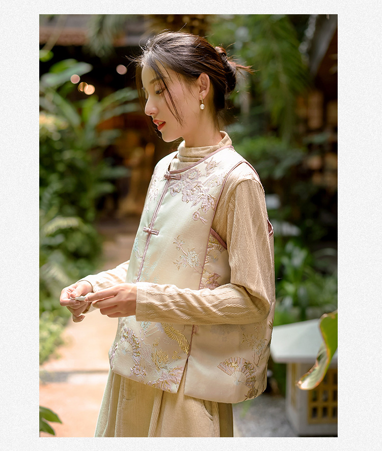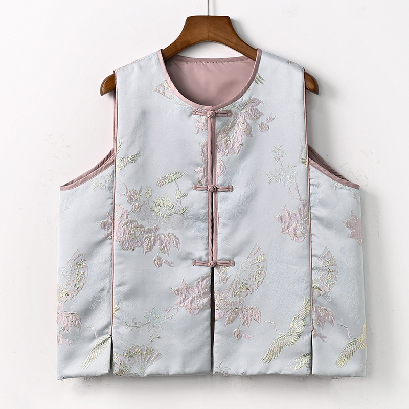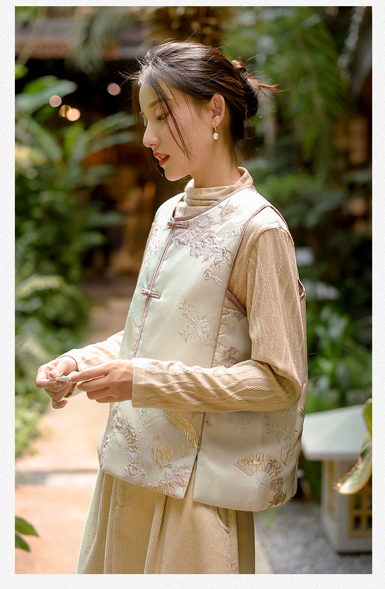여성 2025 봄 새로운 중국 스타일 조끼 여성 레이어링 중국 스타일 새틴 조끼 코트 민소매 Songbrocade 탑스토어 가기