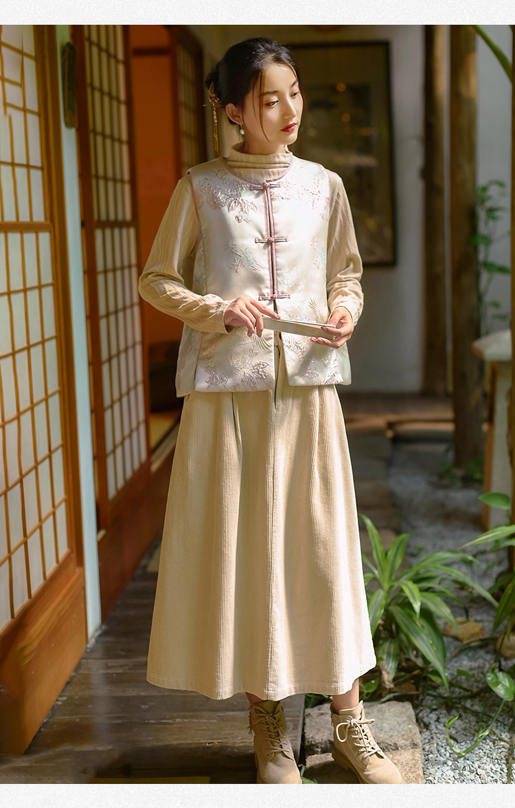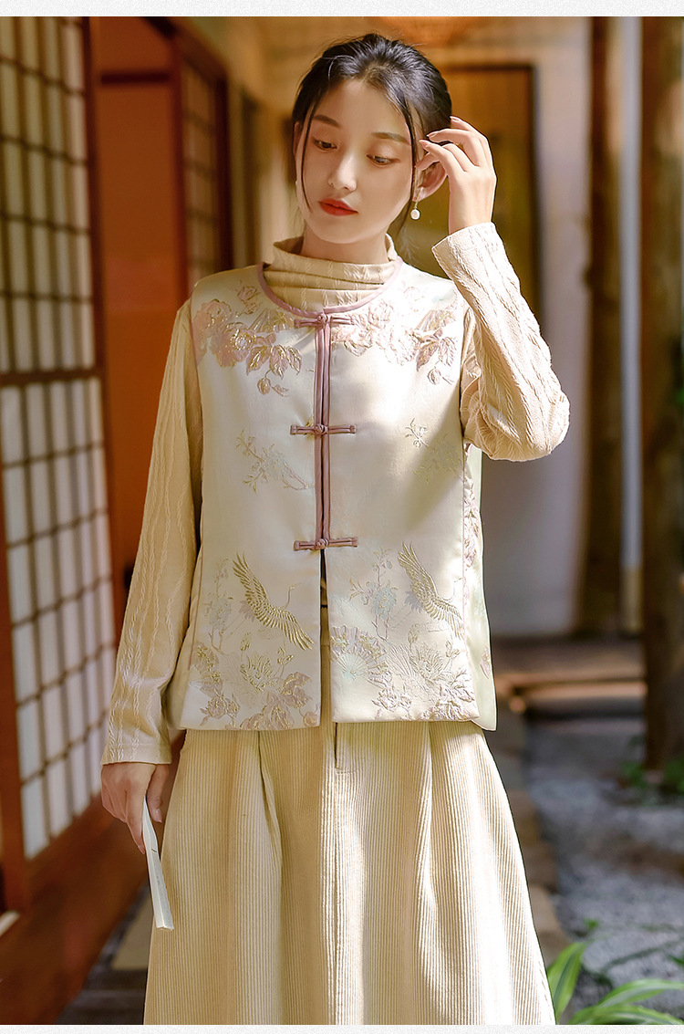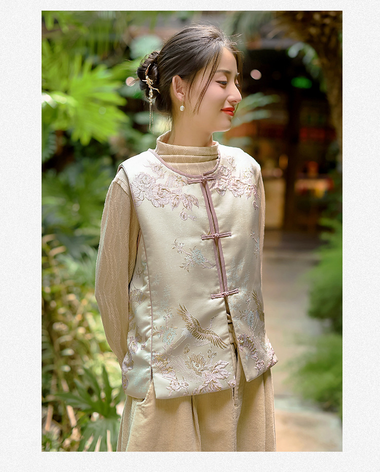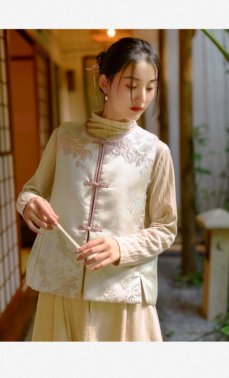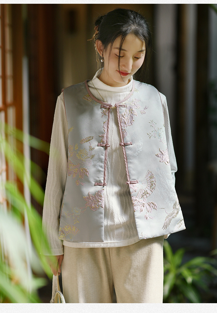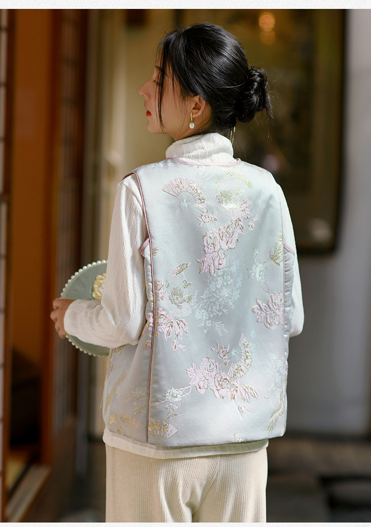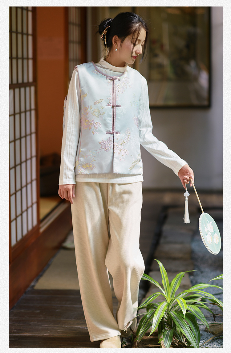 여성 2025 봄 새로운 중국 스타일 조끼 여성 레이어링 중국 스타일 새틴 조끼 코트 민소매 Songbrocade 탑스토어 가기