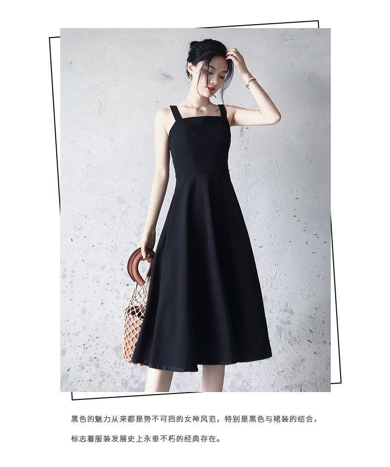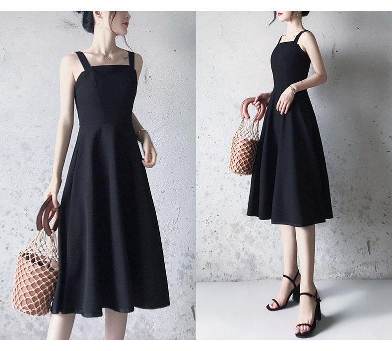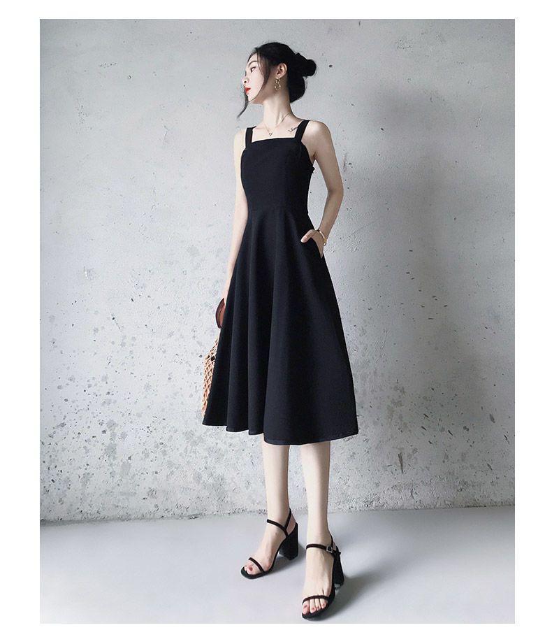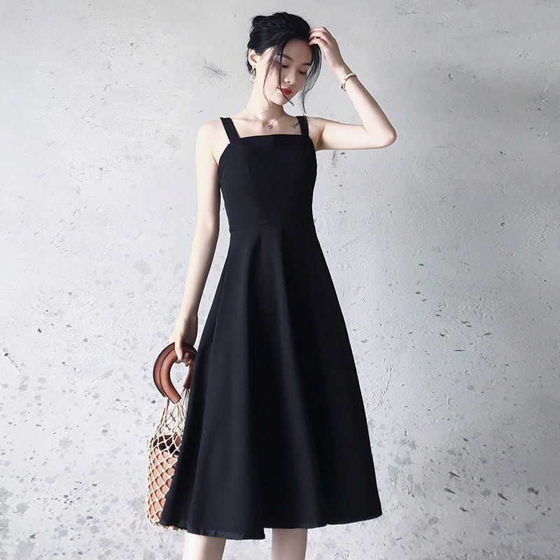 봄 여름 신상 레이어드 블랙 원피스, 블랙 럭셔리 슬립 원피스, 롱 스커트, 배 가리기, 우아한 민소매 원피스
