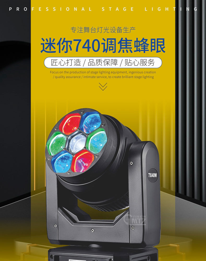 미니7 40W 포커싱 꿀벌눈 미니740 염색 조명 바 클리어바 무빙헤드 빔 조명 공연 무대 조명