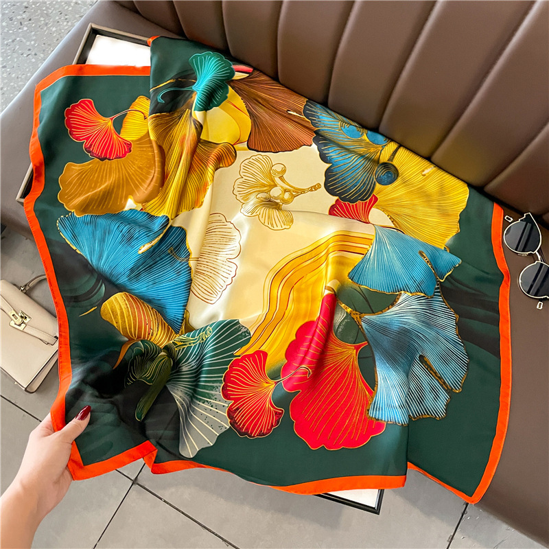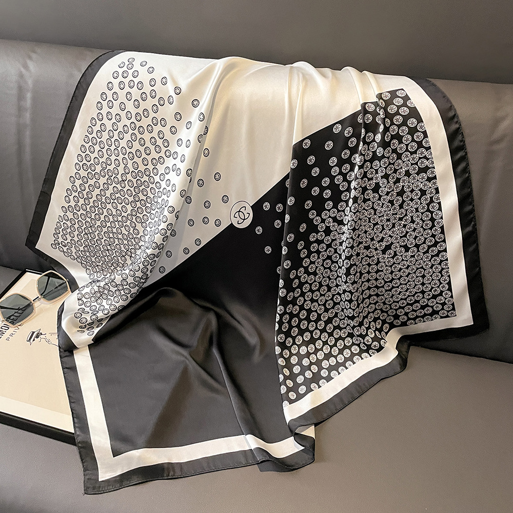 봄과 여름 2024 새로운 패션 올매치 인쇄 실크 스카프 우아한 우아한 실크 터번 90cm 여성용 대형 스퀘어 스카프