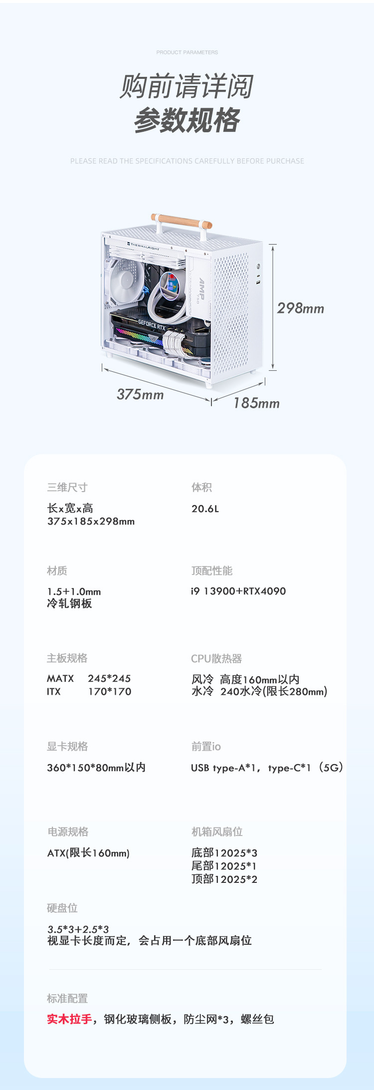 알루미늄 Xiaobao P90A4 휴대용 미니 240 수냉식 섀시 대용량 MATX/ITX 데스크탑 컴퓨터 섀시
