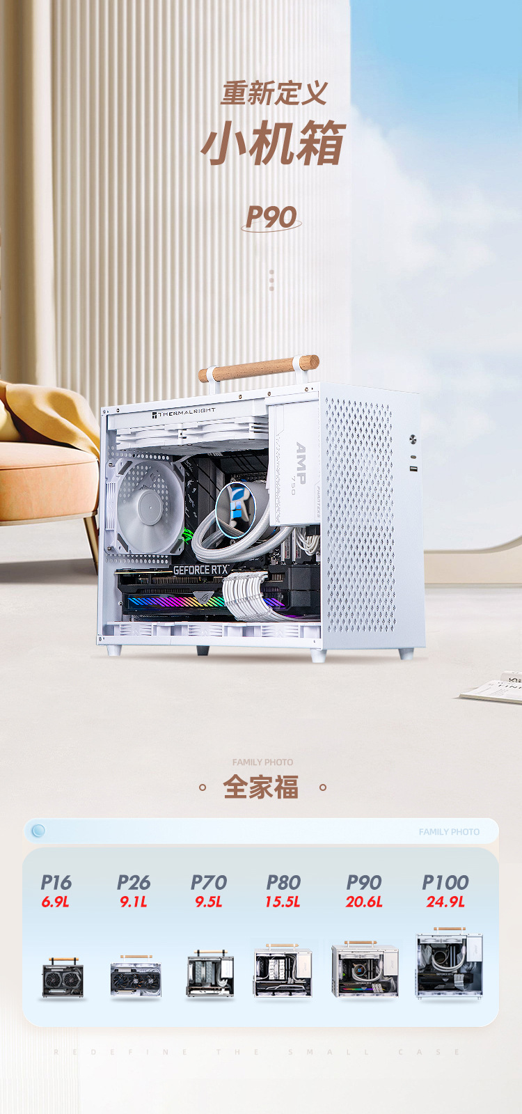 P90 钢化玻璃侧板PC小机箱12cm风扇电竞电脑小机箱