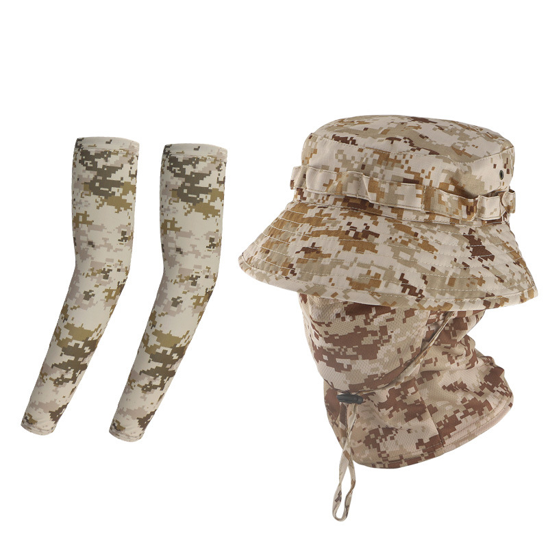 여름 위장 세트 태양 보호 얼음 소매 베니 모자 전술 헤드 기어 야외 통기성 빠른 건조 태양 보호 유럽과 미국 남성스토어 가기