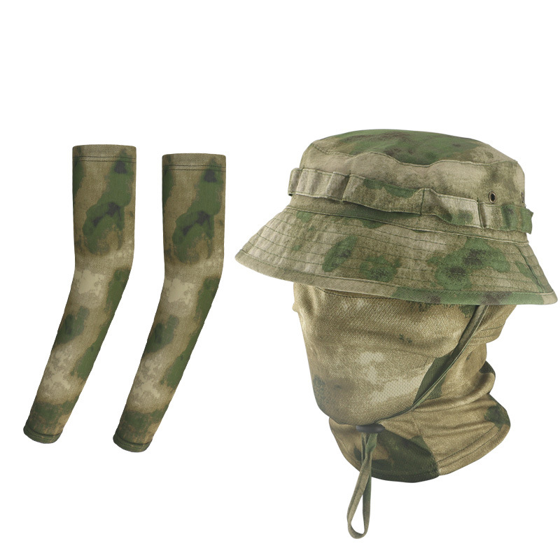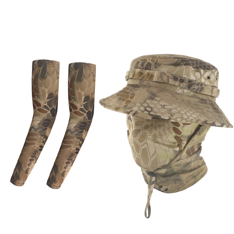 여름 위장 세트 태양 보호 얼음 소매 베니 모자 전술 헤드 기어 야외 통기성 빠른 건조 태양 보호 유럽과 미국 남성