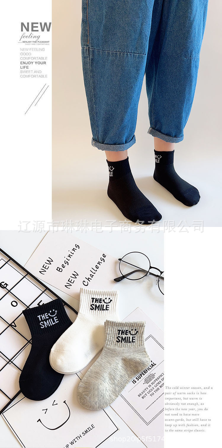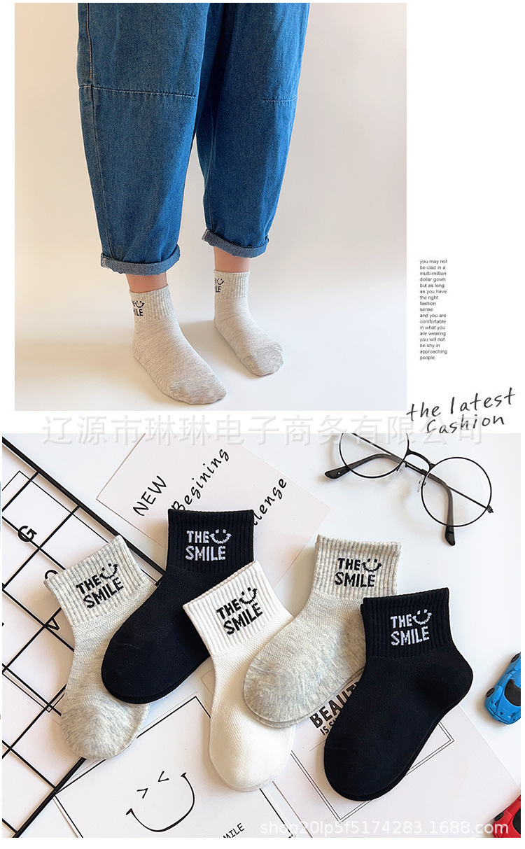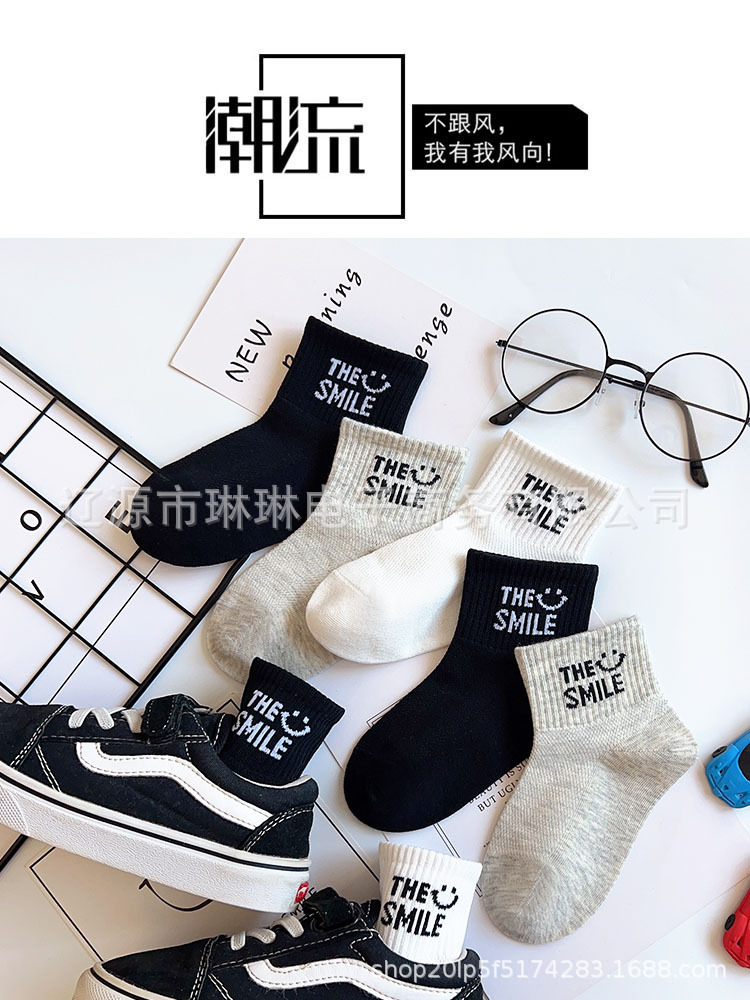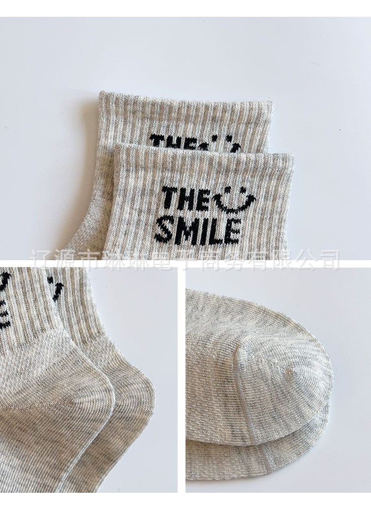 사랑의 진드기 어린이 양말 제조 업체 도매 재고 봄과 여름 얇은 메쉬 통기성 흑백 회색 문자 짧은 튜브 양말스토어 가기