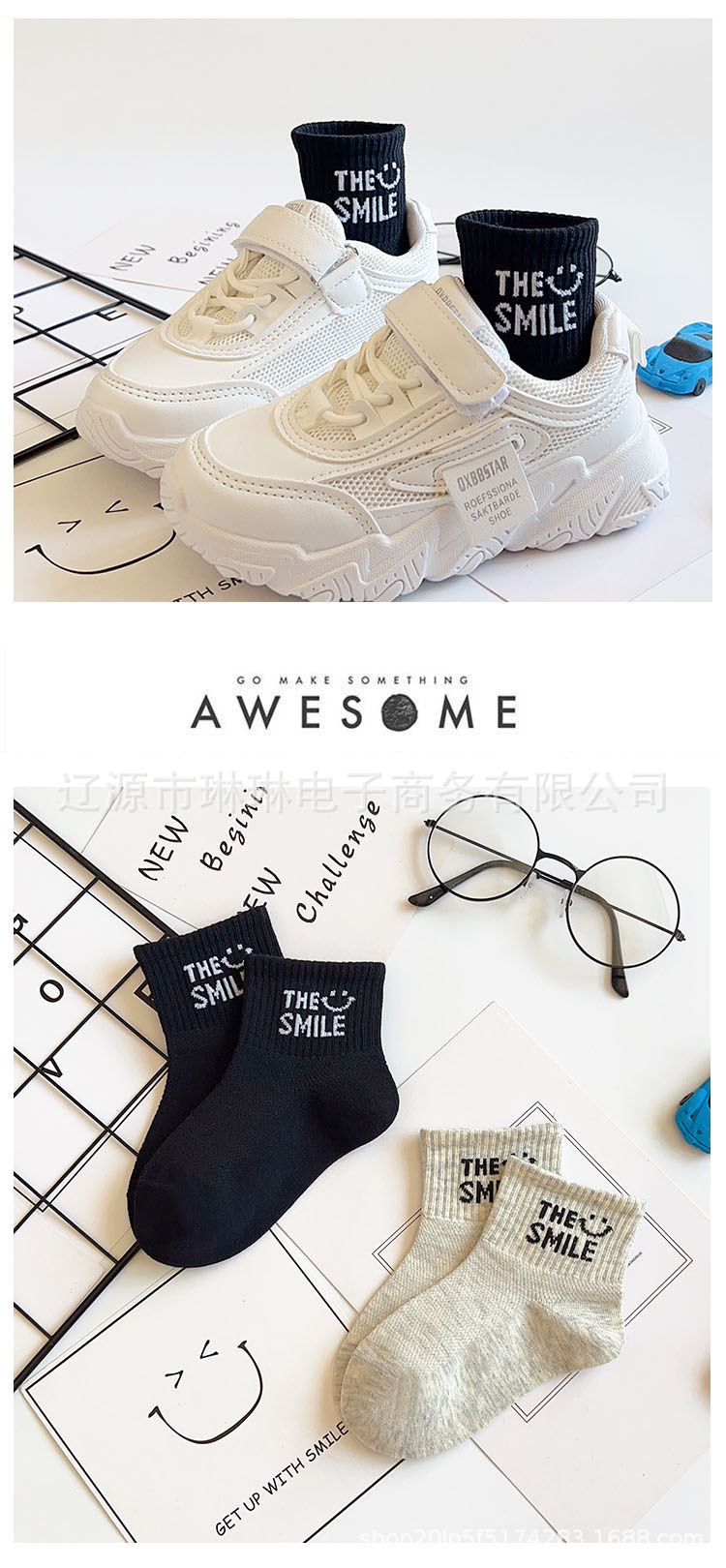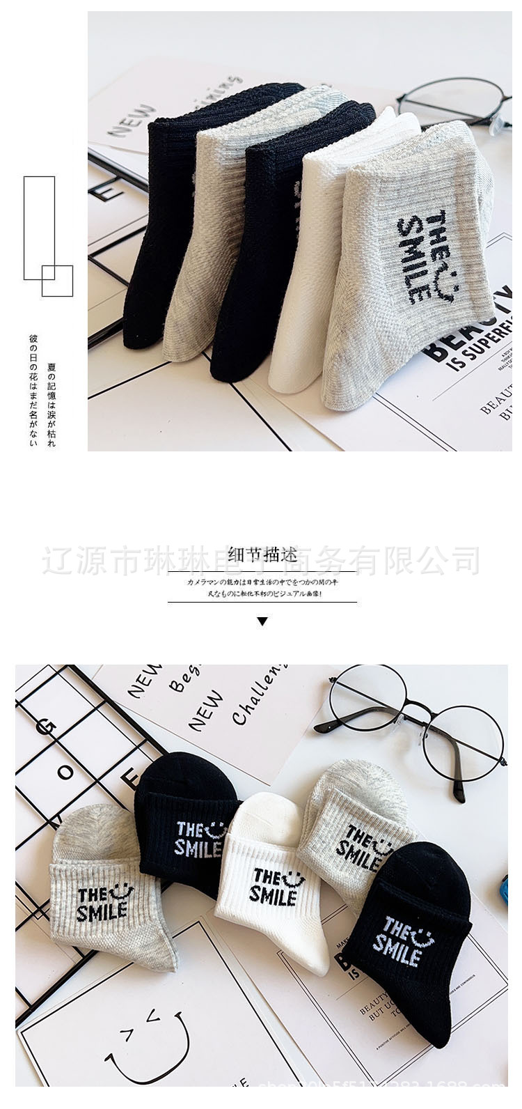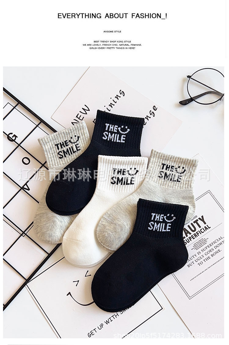 사랑의 진드기 어린이 양말 제조 업체 도매 재고 봄과 여름 얇은 메쉬 통기성 흑백 회색 문자 짧은 튜브 양말스토어 가기