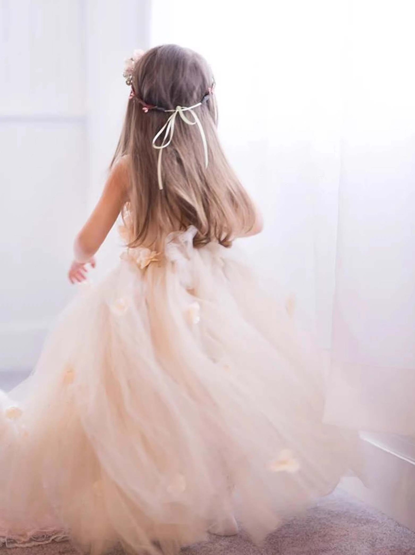 여아용 스트랩 드레스 2025 신상 중대형 어린이 꽃 공주 드레스 달콤한 플라워 걸 웨딩 퍼프 스커트 도매스토어 가기