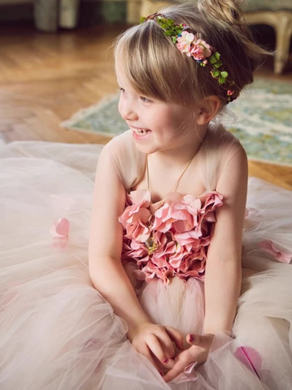 여아용 스트랩 드레스 2025 신상 중대형 어린이 꽃 공주 드레스 달콤한 플라워 걸 웨딩 퍼프 스커트 도매