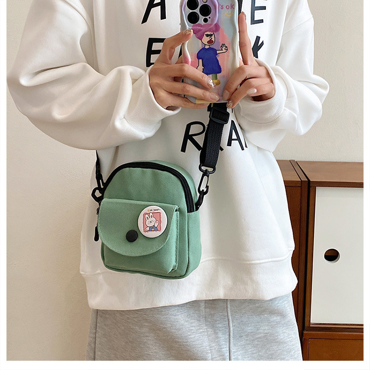 캔버스 숄더백 새로운 한국 스타일 캐주얼 간단한 패션 단색 인터넷 유명 인사 캔디 컬러 작은 가방 휴대 전화 메신저 가방