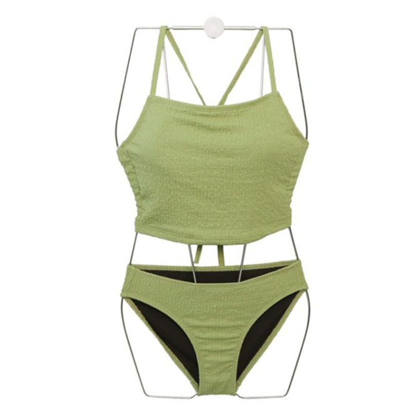 한국 스타일 핫 세일 올리브 그린 텍스처 분할 비키니 수영복 소녀의 새 스타일 핫 스프링 수영복 스트랩