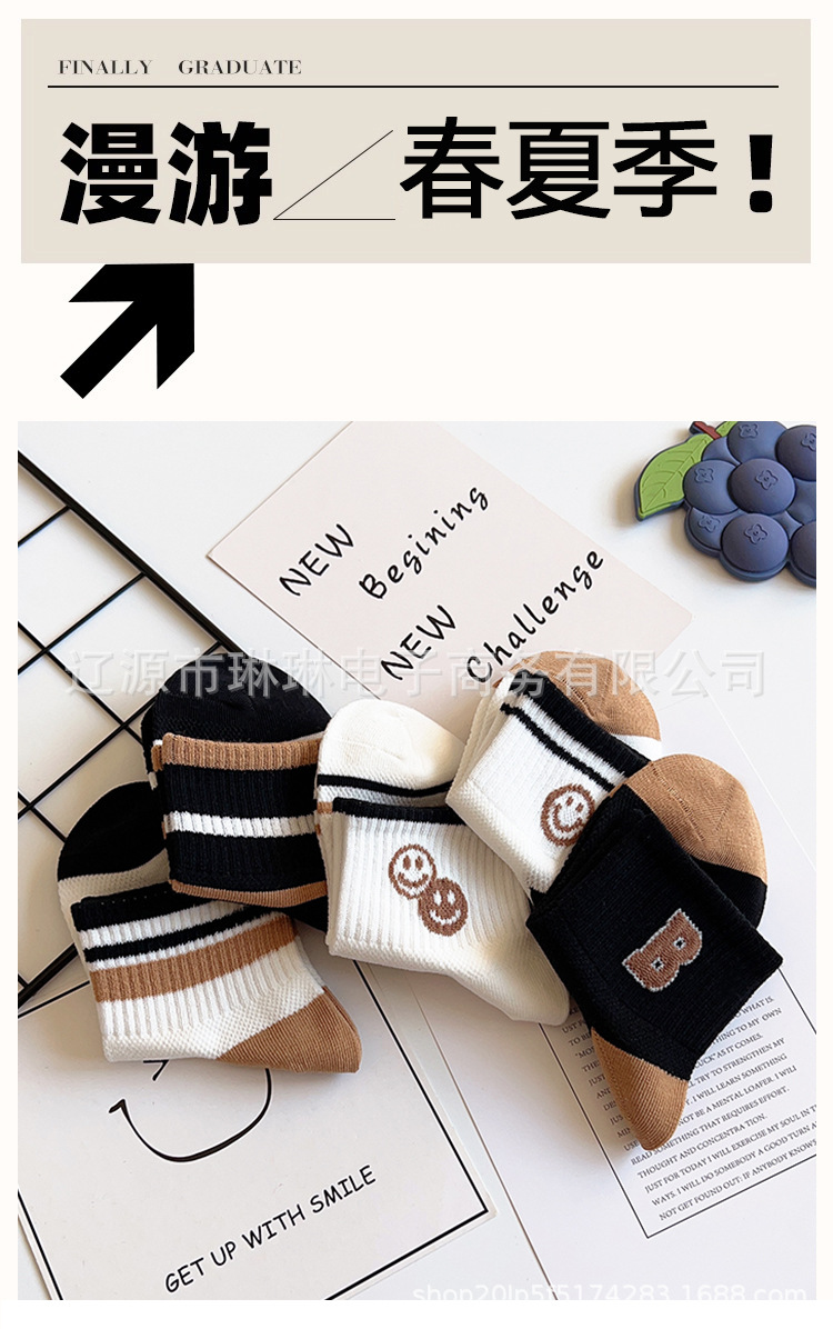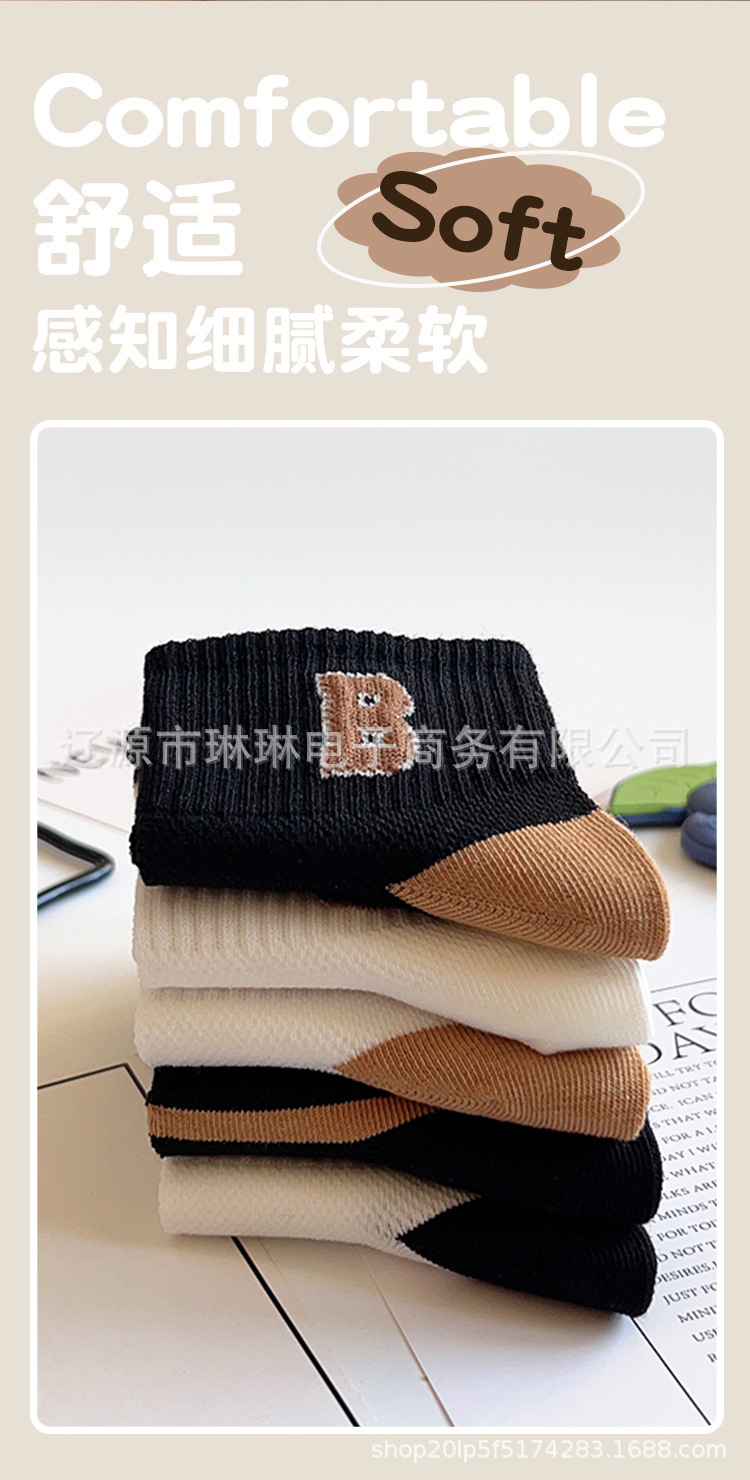 사랑의 진드기 어린이 양말 제조 업체 도매 재고 봄과 여름 얇은 메쉬 통기성 빗질 면화 학생 짧은 튜브 양말스토어 가기