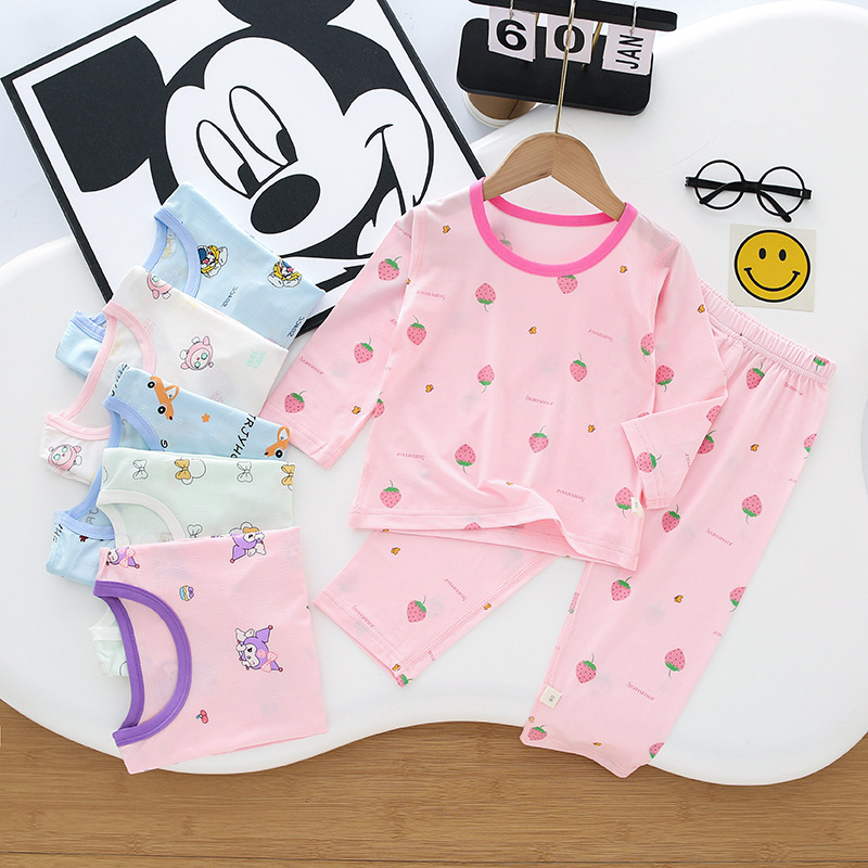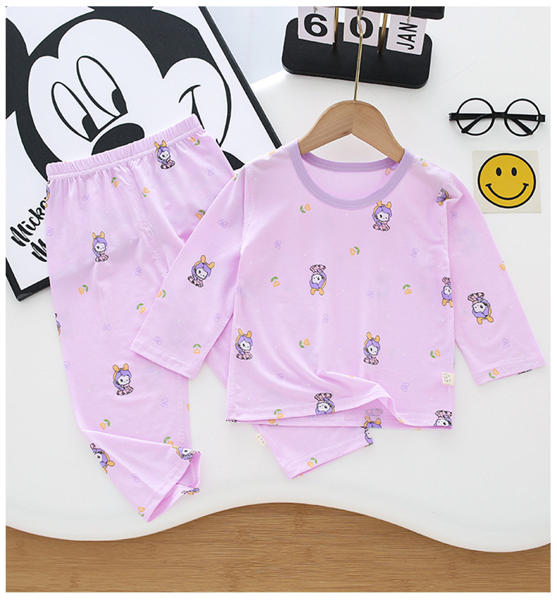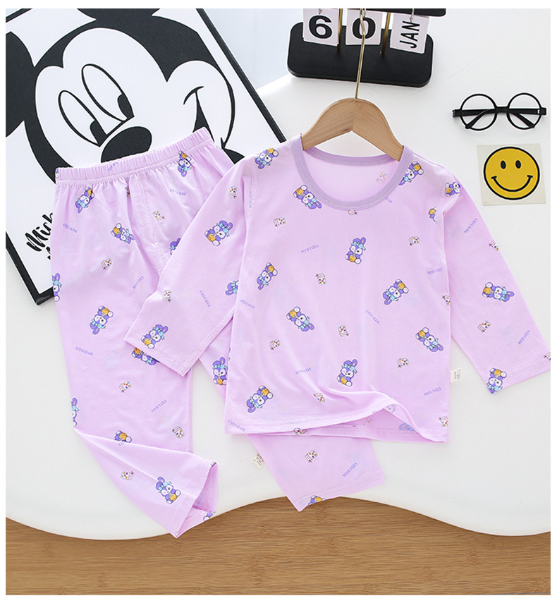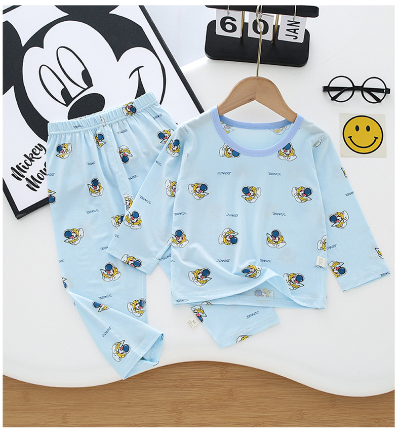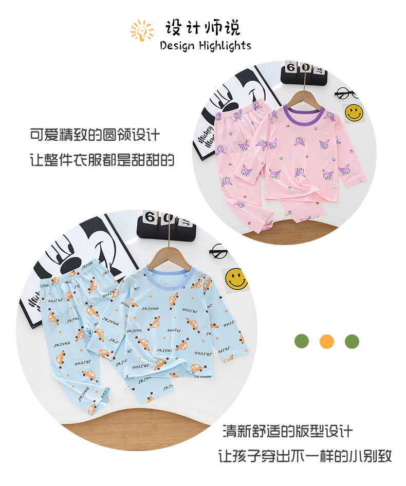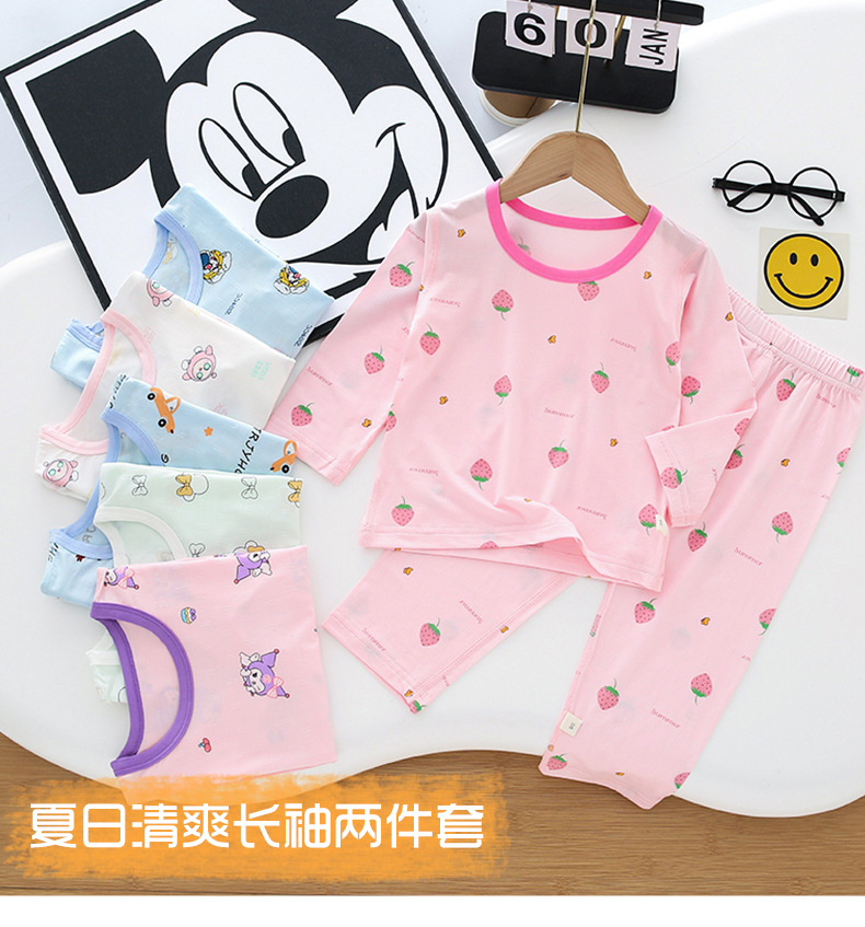 봄과 여름 새로운 어린이 자연 얼음 비면 어린이 잠옷 에어컨 옷 긴 소매 세트