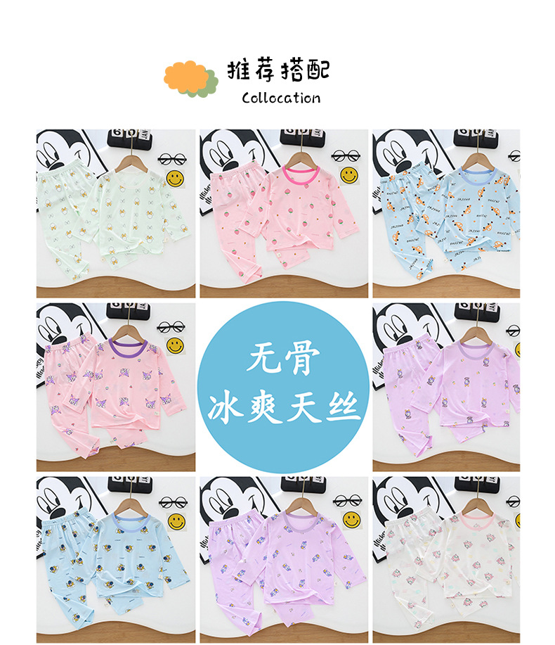봄과 여름 새로운 어린이 자연 얼음 비면 어린이 잠옷 에어컨 옷 긴 소매 세트스토어 가기