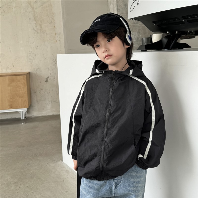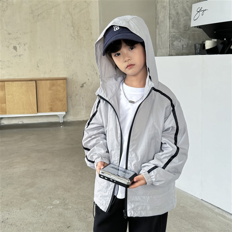 2024 년 봄 새 소년 리본 후드 야외 캠핑 자켓 탑 어린이 한국 아동복 프록 방수스토어 가기