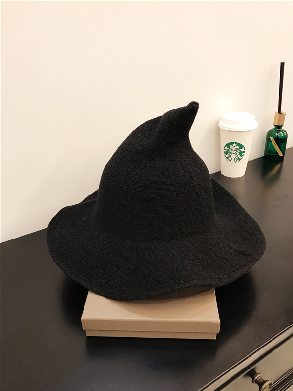 해외 인기 면사 마법사 모자 아마존 할로윈 마녀 니트 모자 뾰족한 접이식 마법 모자 여성용스토어 가기