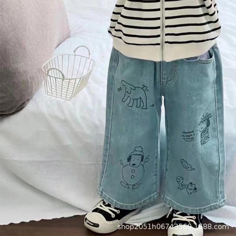 소녀의 봄과 가을 청바지 2024 새로운 세련된 스티칭 청바지 어린이 올매치 패션 스트레이트 트렌디 바지스토어 가기