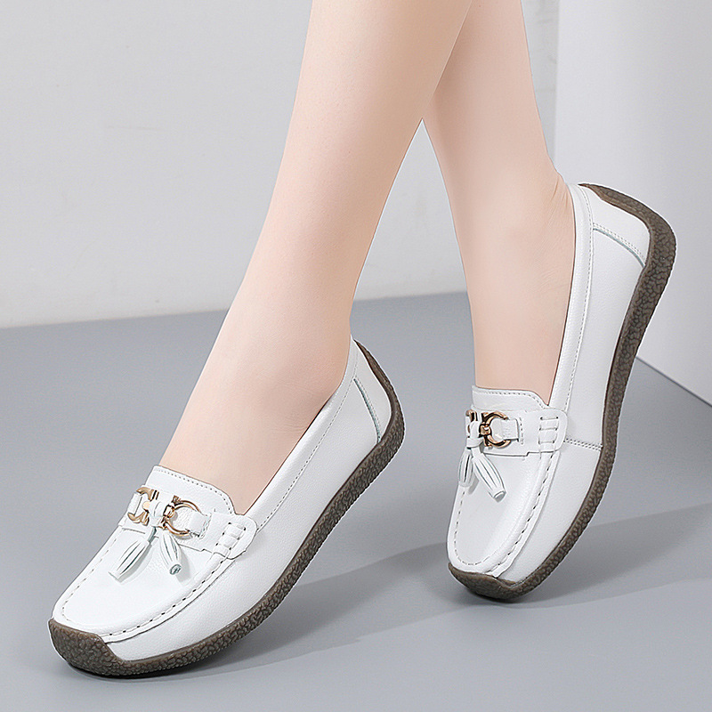 가을과 겨울 새로운 로퍼 여성 싱글 레이어 신발 완두콩 신발 플러스 사이즈 엄마 신발 유행 올 매치 여성 신발