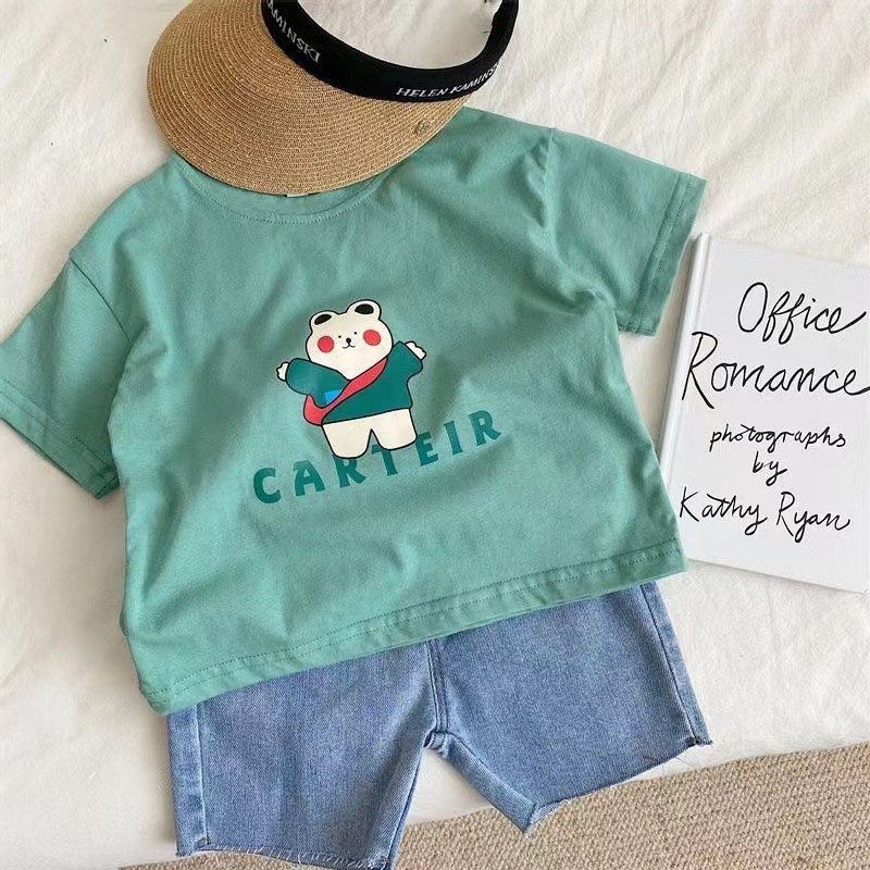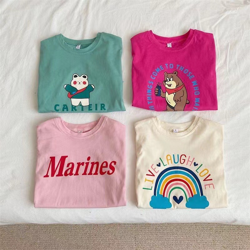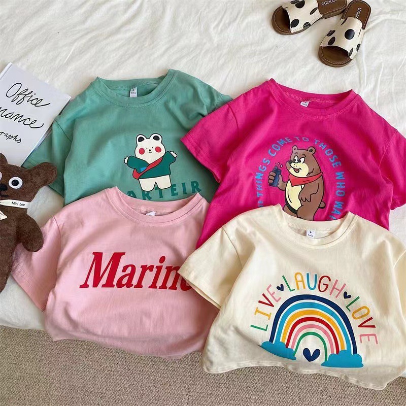 어린이 면 반팔 티셔츠 아기 탑 유니섹스 반팔 티셔츠 뉴 2024 여름 느슨한 한국 캐주얼스토어 가기