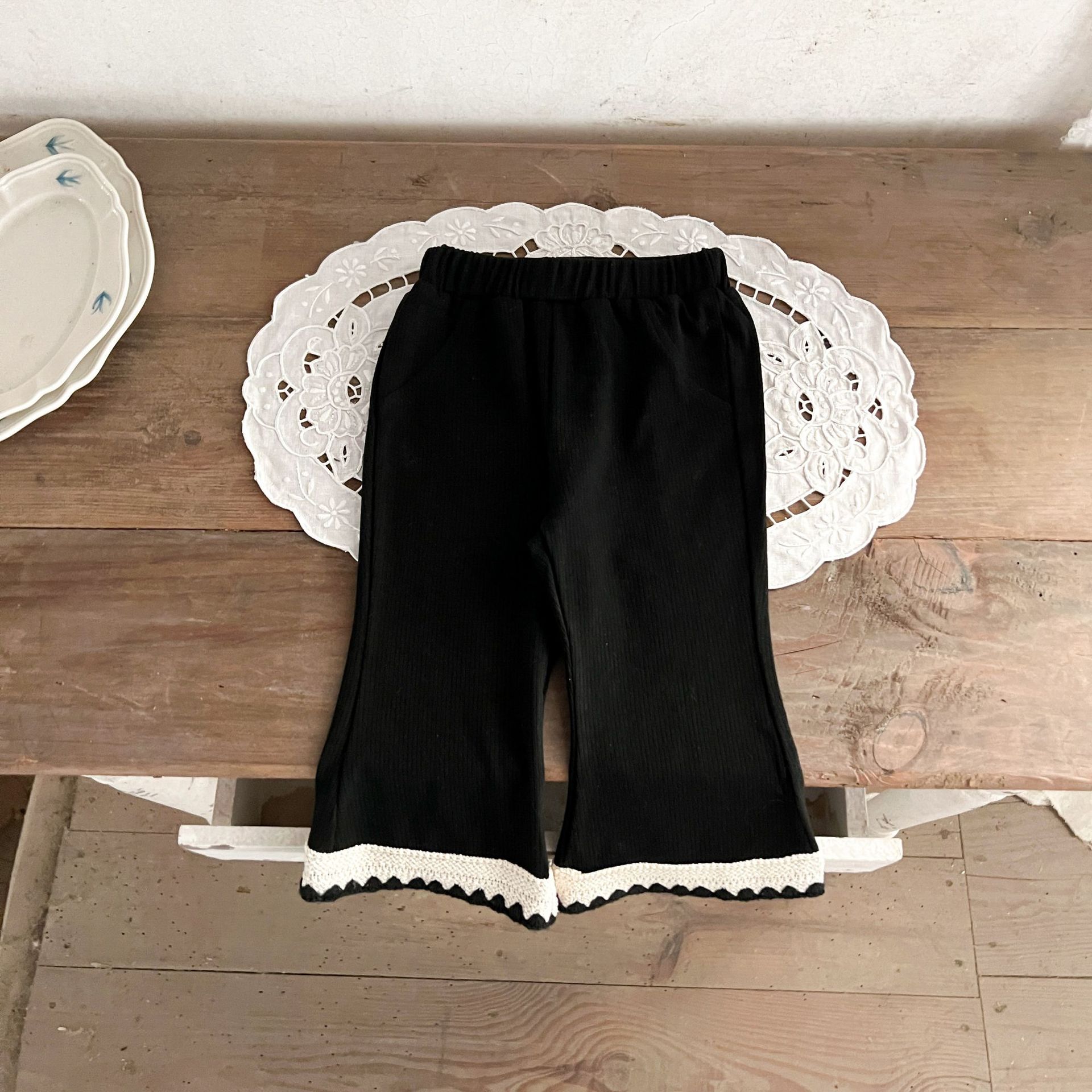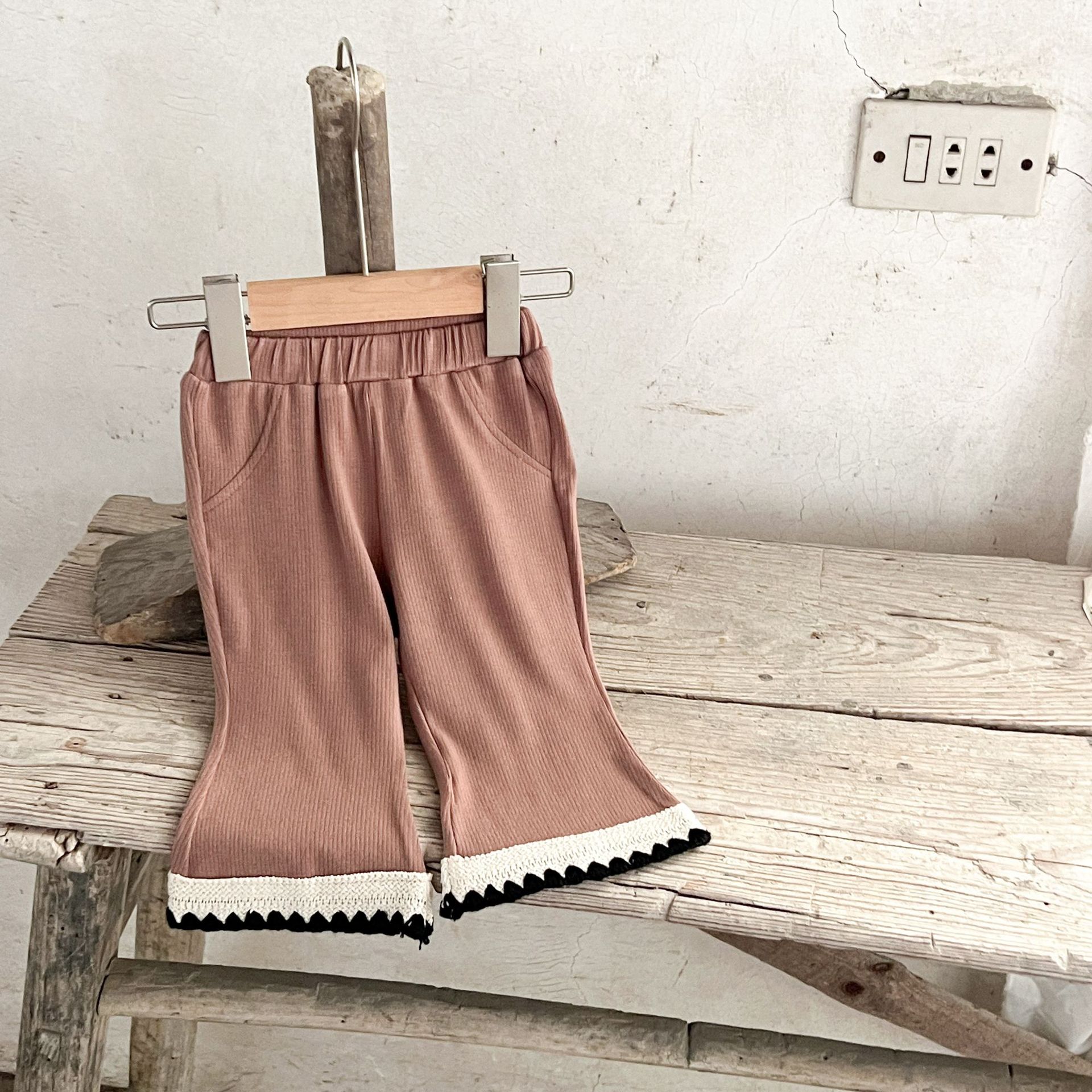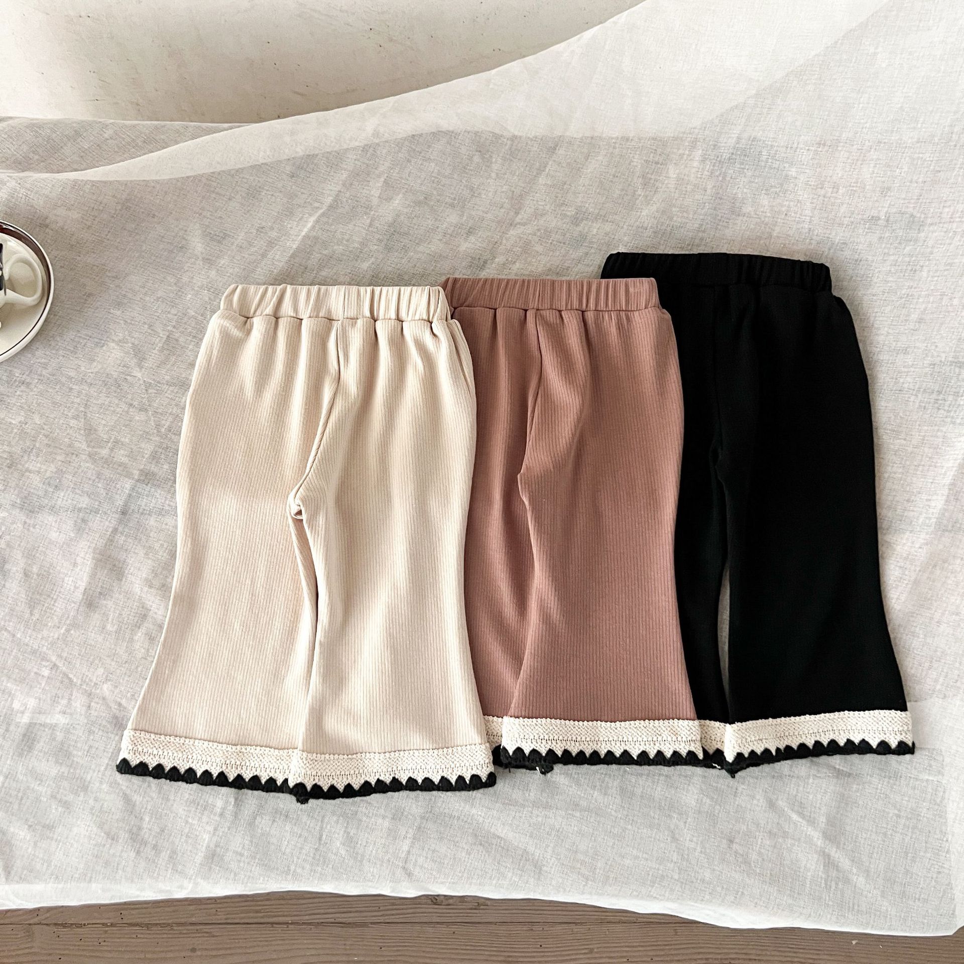 한국 스타일 유행 스타일 소녀 봄 바지 여성 아기 솔리드 컬러 핏 레이스 플래 팬츠 높은 탄성 퓨어 코튼 외부 착용 바지