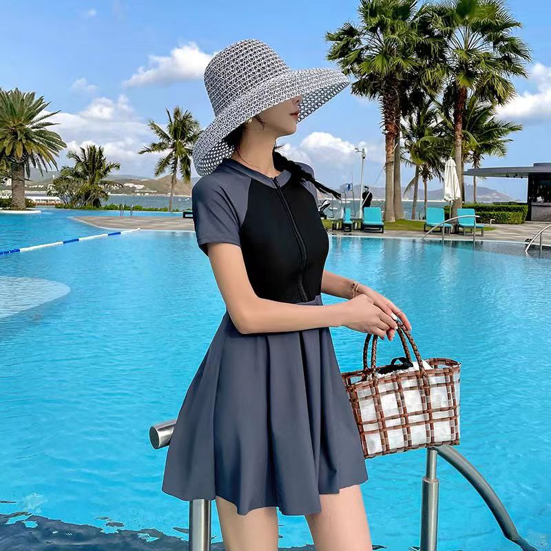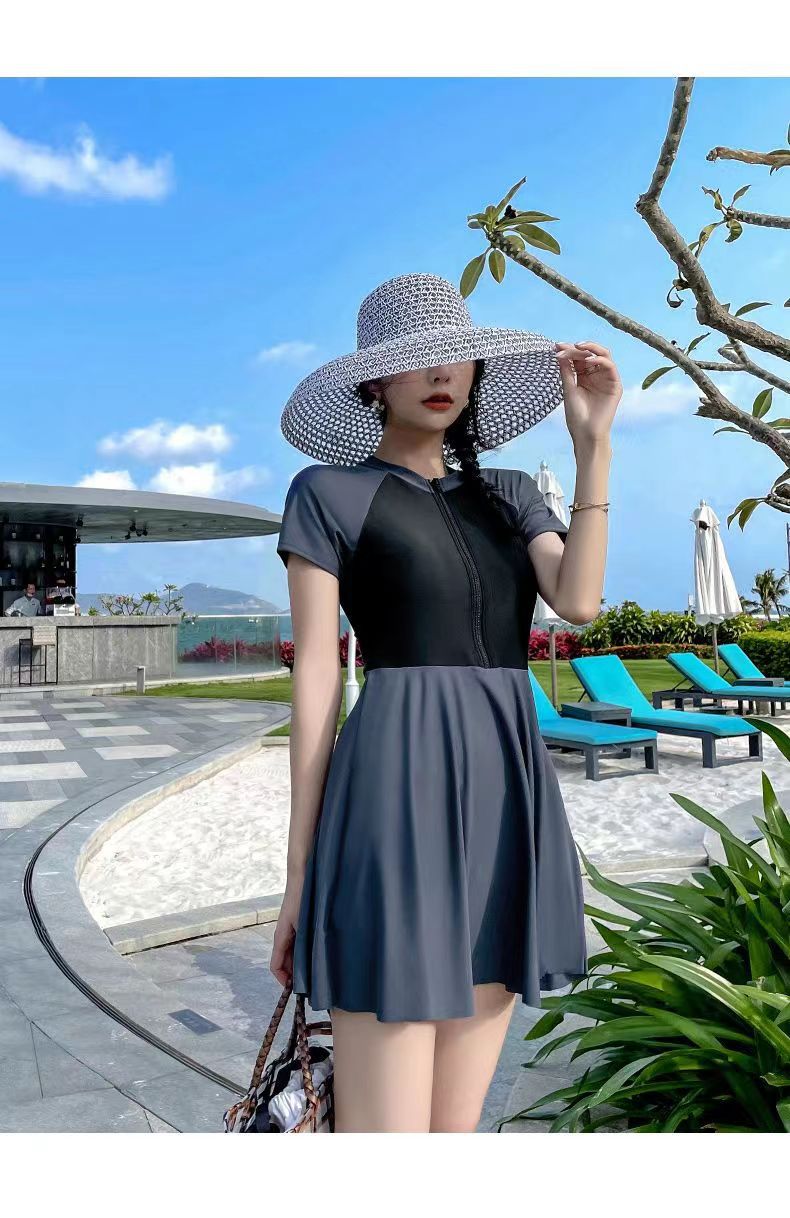 온천 스포츠 특수 수영복 여성용 플러스 사이즈 뚱뚱한 mm 원피스 스커트 스타일 보수적 인 배 커버 슬리밍 학생 수영복