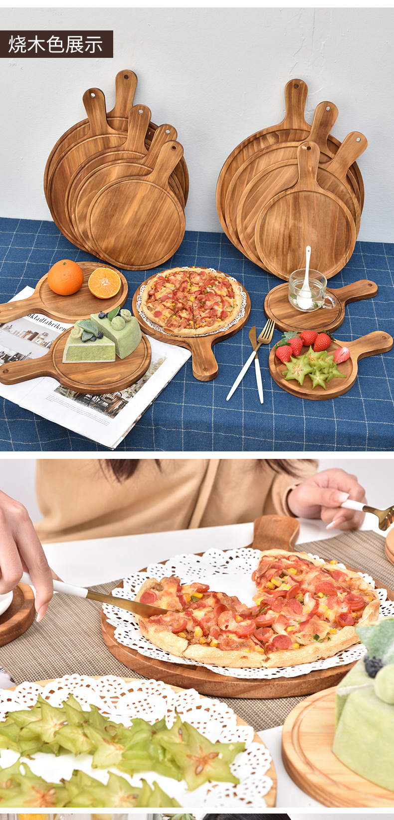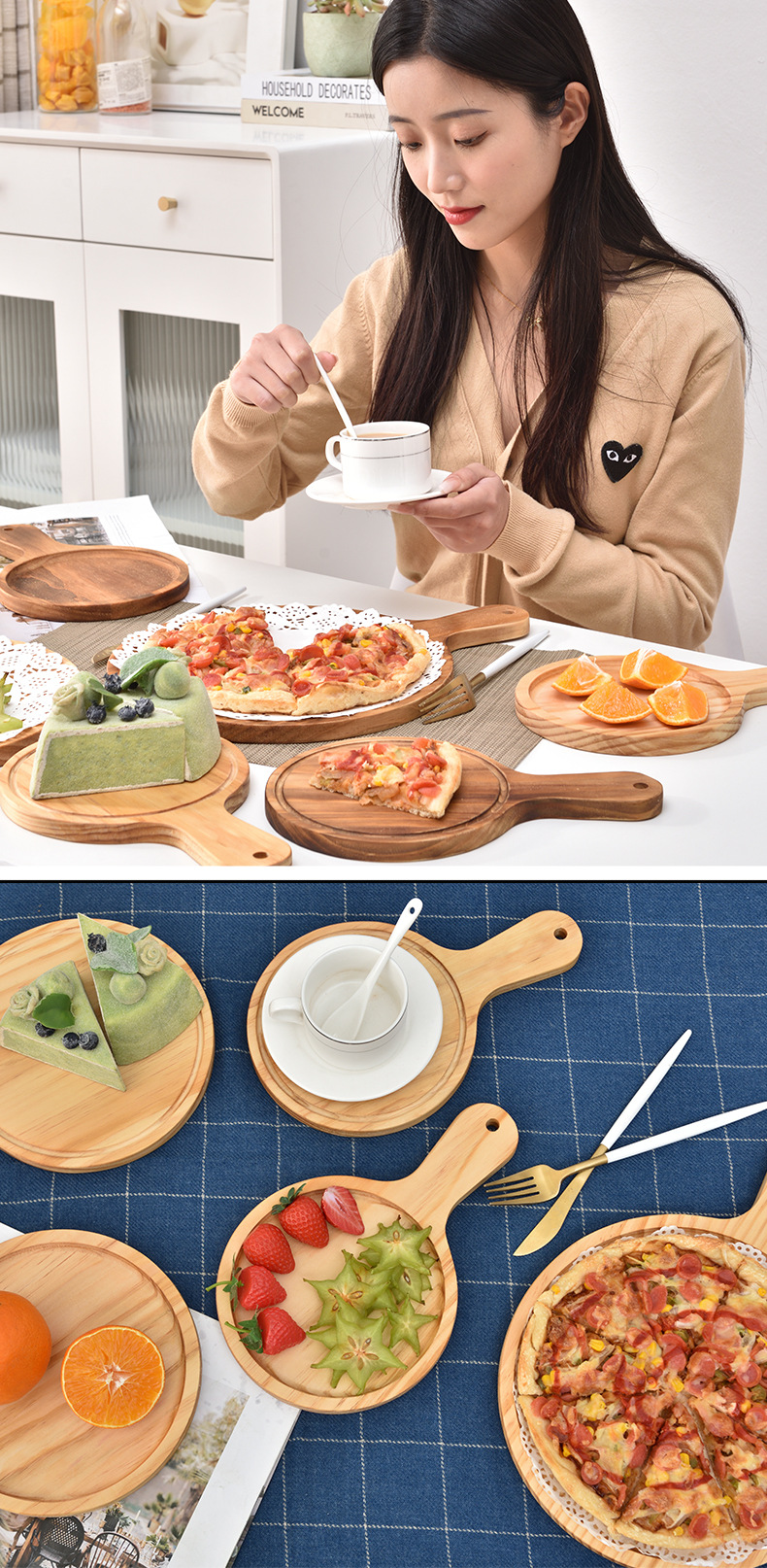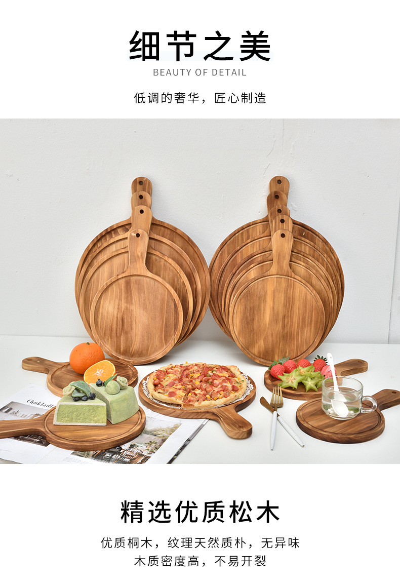 피자 플레이트 나무 트레이 판자 단단한 나무 일본 라운드 가정용 빵 케이크 스테이크 플레이트 베이킹 플레이트 나무 플레이트스토어 가기