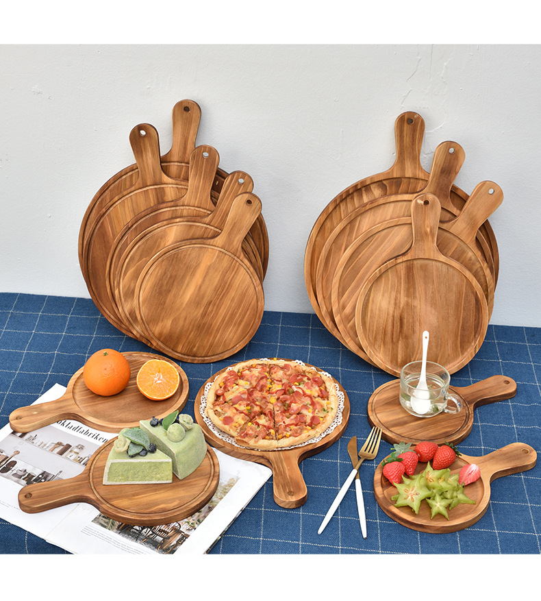 피자 플레이트 나무 트레이 판자 단단한 나무 일본 라운드 가정용 빵 케이크 스테이크 플레이트 베이킹 플레이트 나무 플레이트