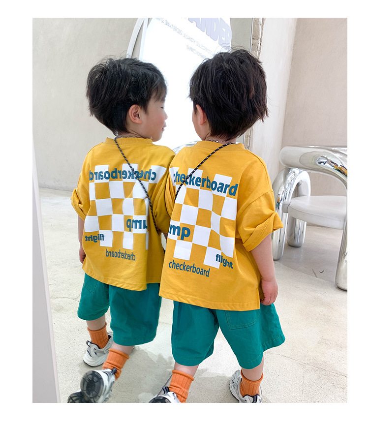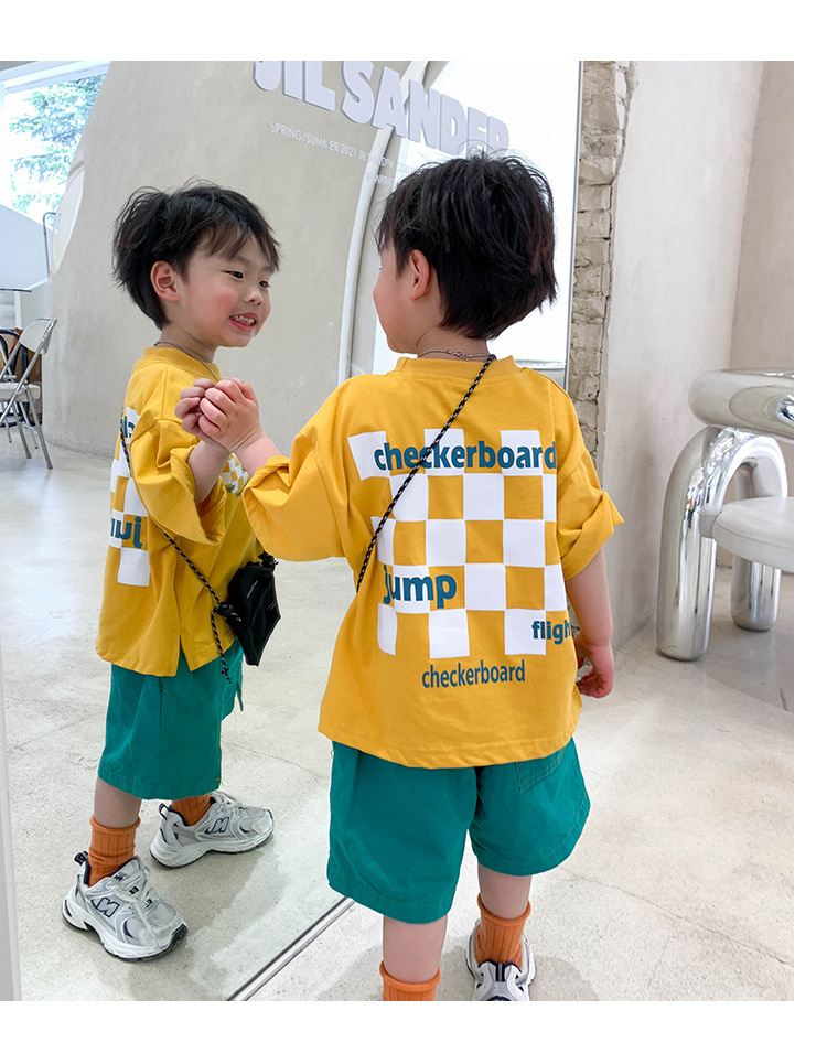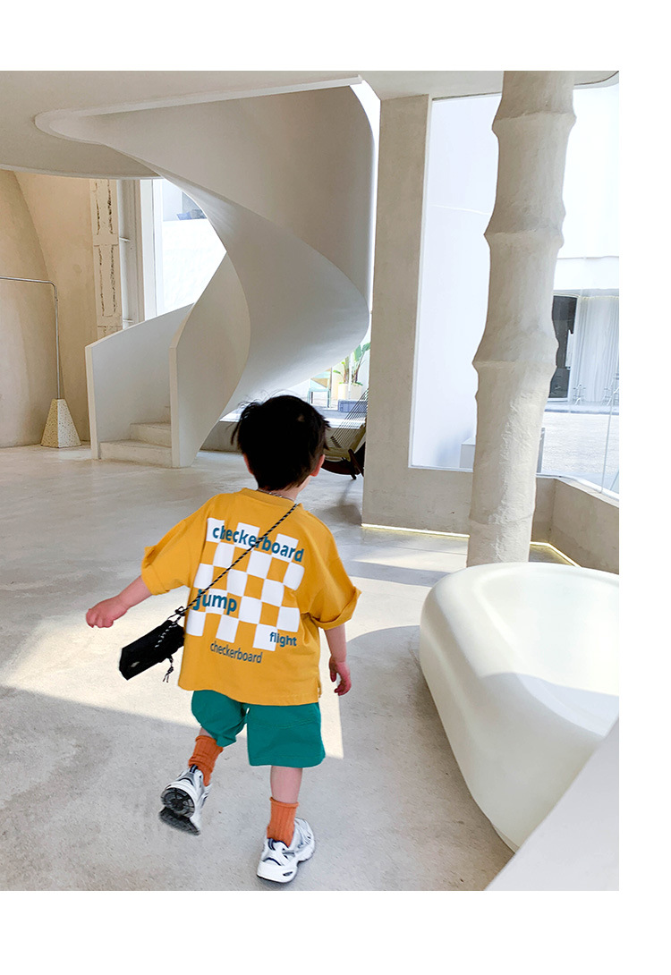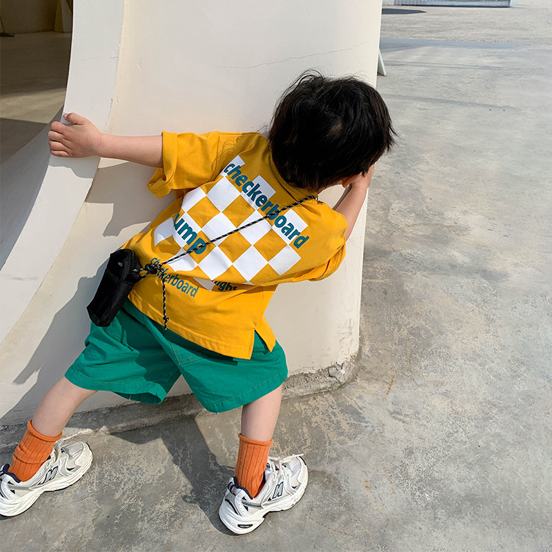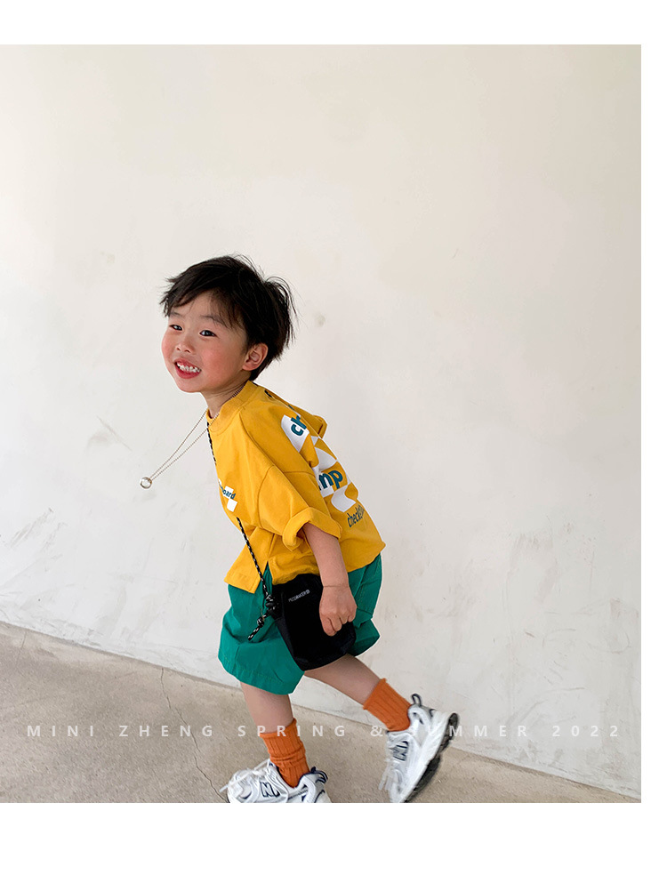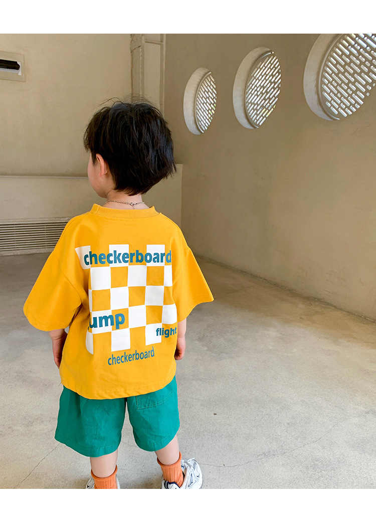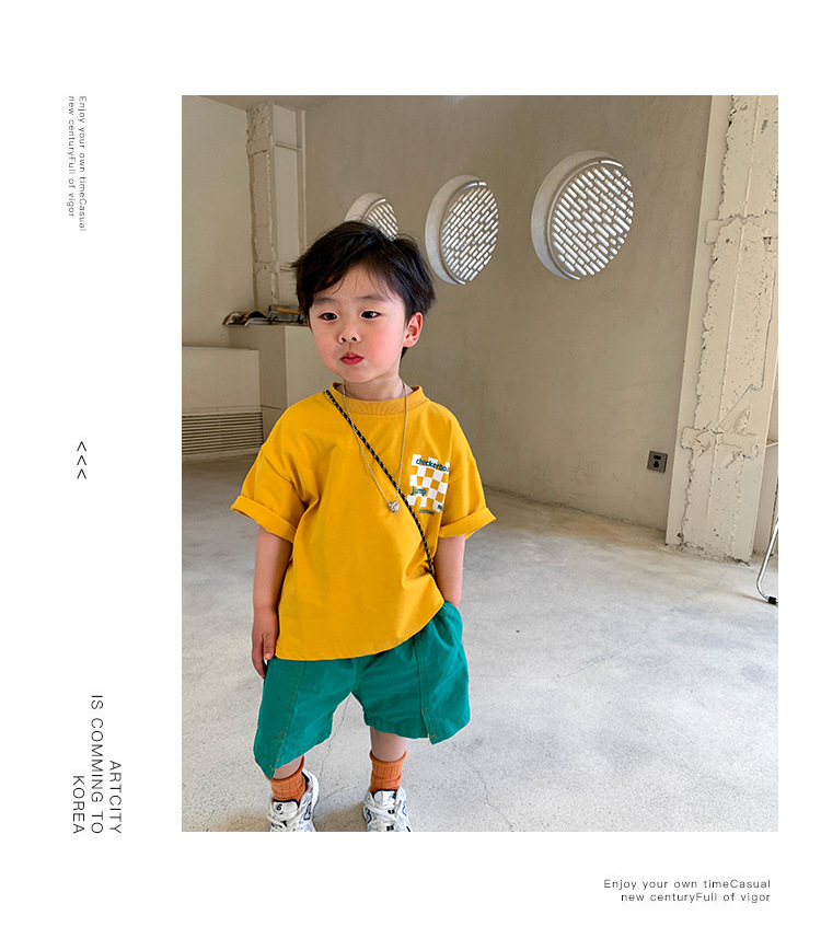 소년 순면 반팔 티셔츠 2025 여름 새로운 어린이 한국 스타일 잘 생긴 셔츠 중소 어린이 라운드 넥 풀오버스토어 가기