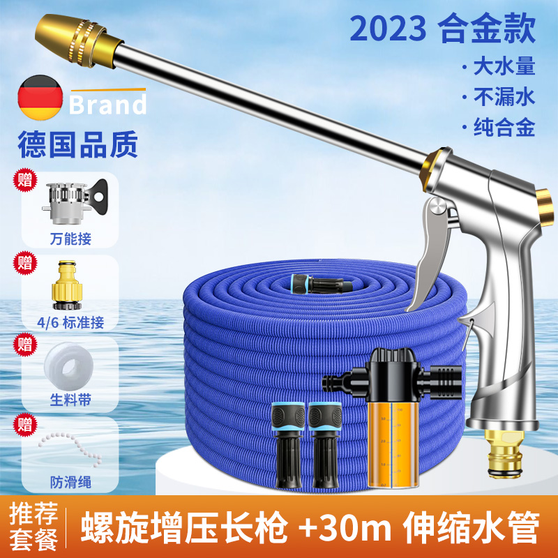 • [나선형 부스터 물총 업그레이드] 30 m 금속 텔레스코픽 튜브 + 폼 포트 [물 주입 전 10 m]]