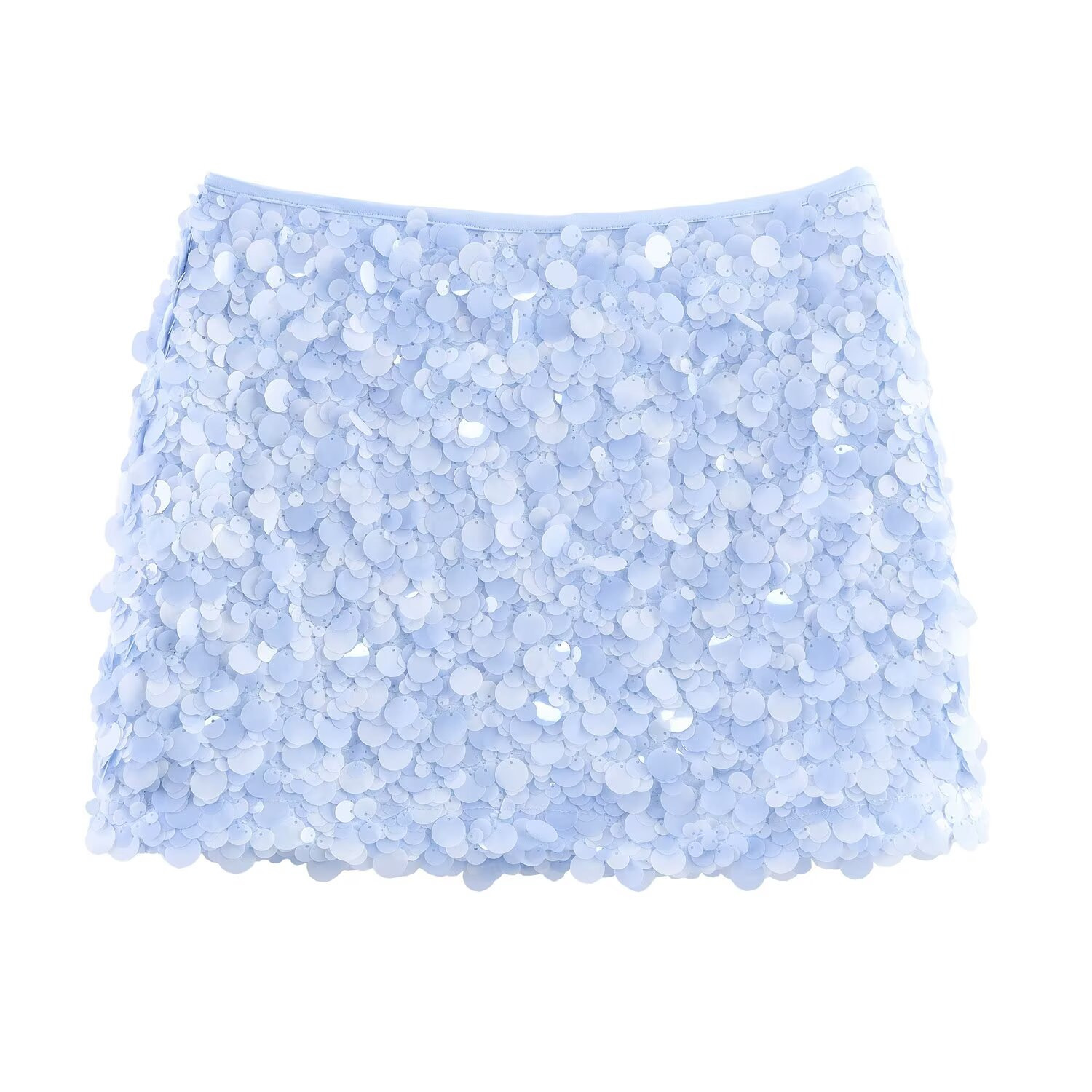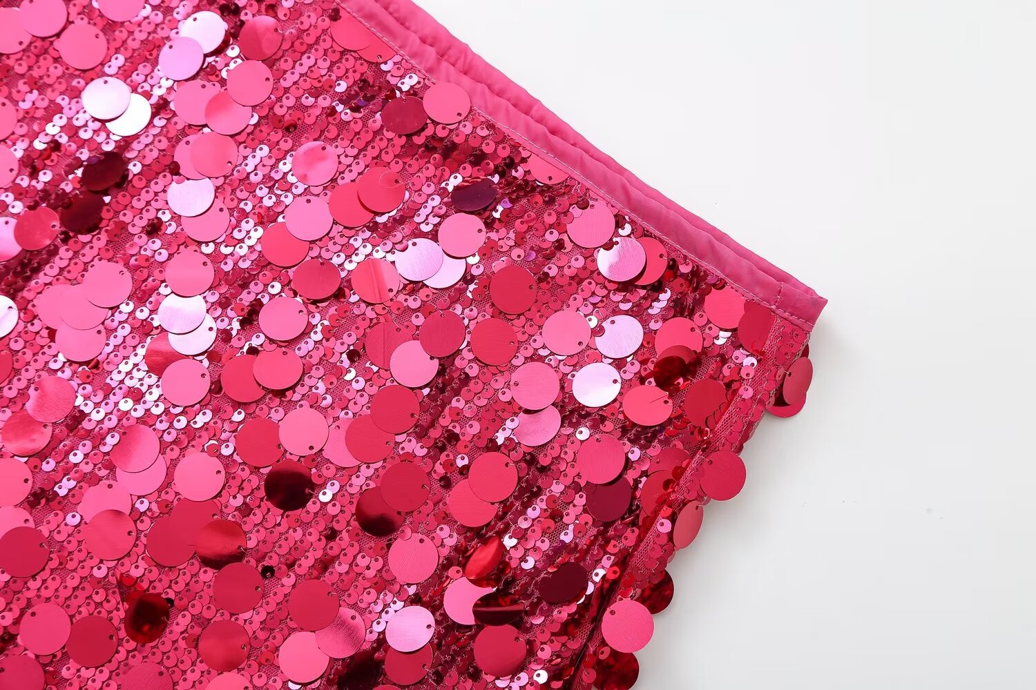 유럽과 미국의 국경 여성 의류 도매 여성의 6 색 하이 허리 스팽글 미니 스커트