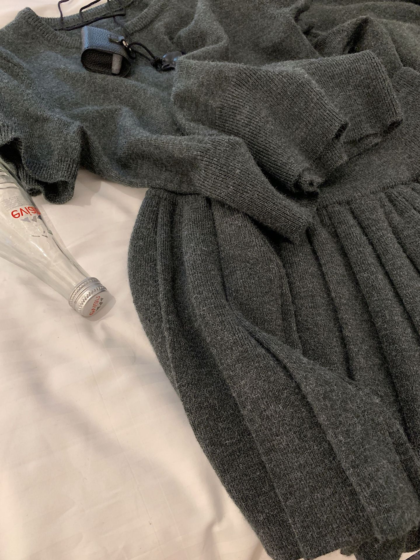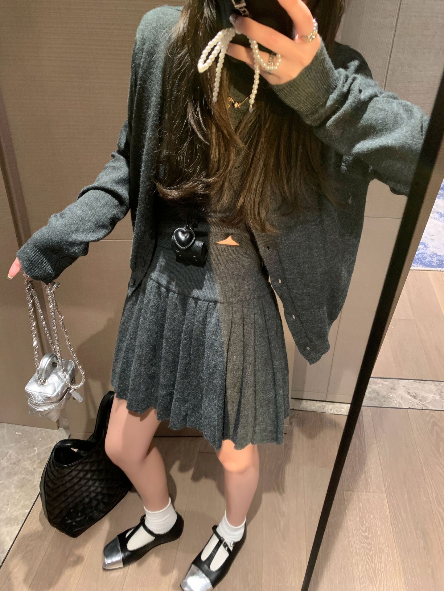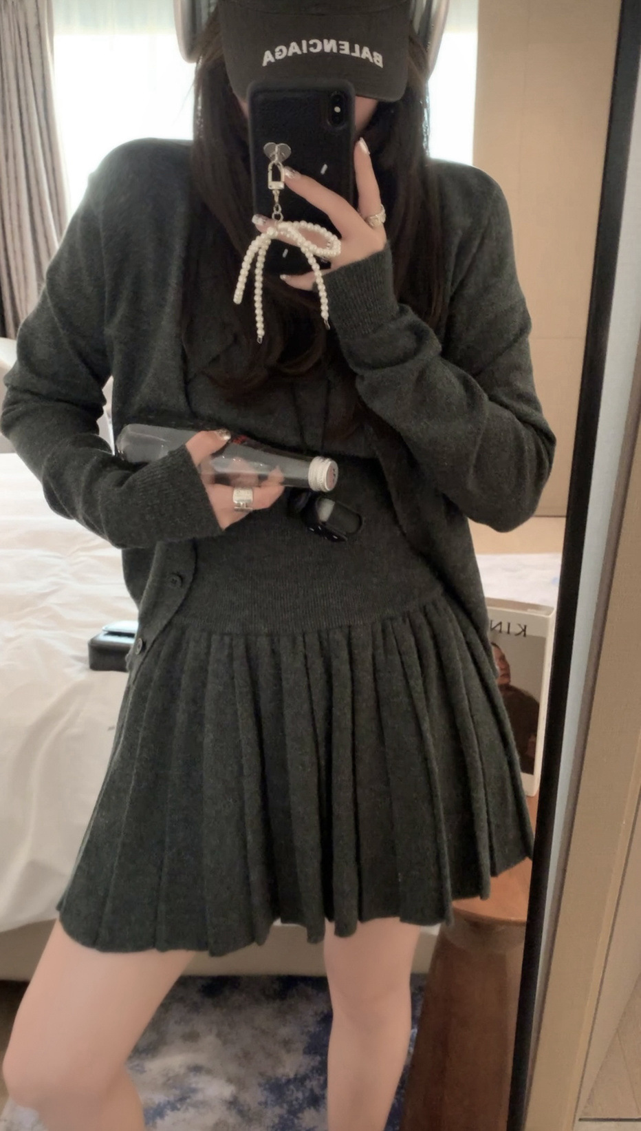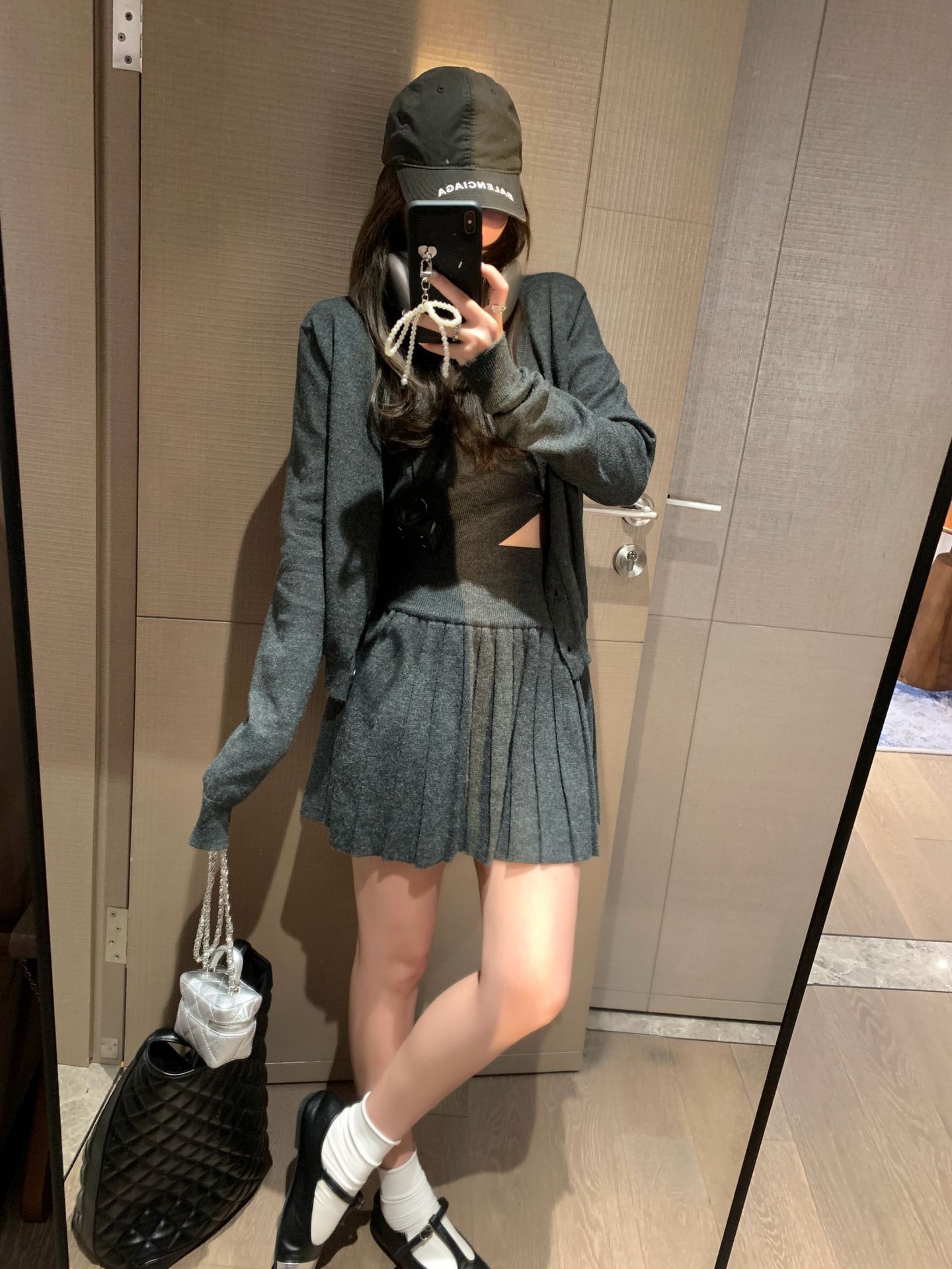 里面短袖针织外面小开衫搭配百褶短裙