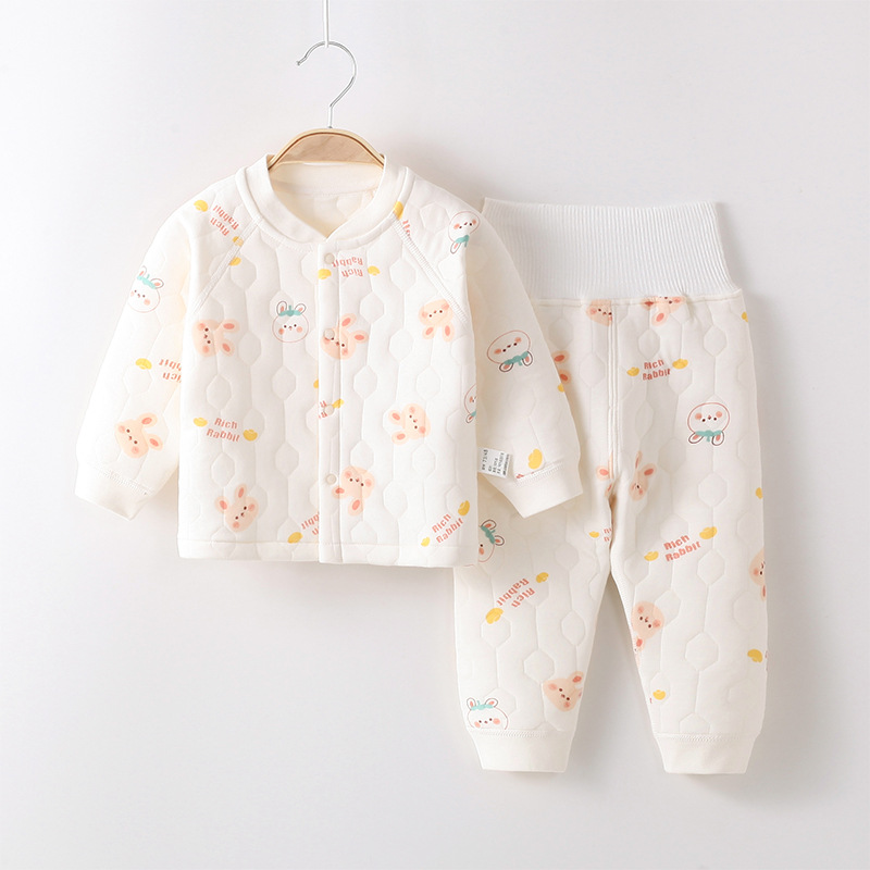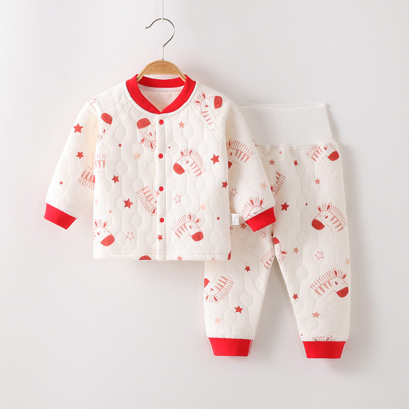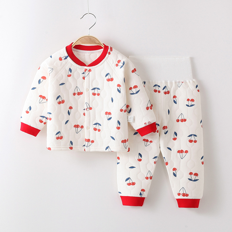 아기 옷 가을과 겨울 속옷 세트 클래스 3 층 따뜻한 옷 슈퍼 부드러운 높은 허리 배꼽 보호 어린이 가을 옷과 긴 존스