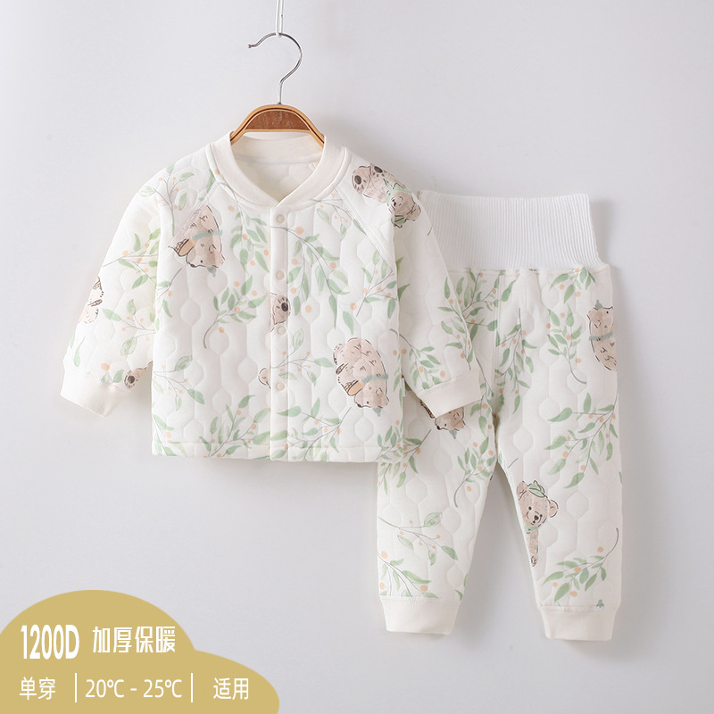 아기 옷 가을과 겨울 속옷 세트 클래스 3 층 따뜻한 옷 슈퍼 부드러운 높은 허리 배꼽 보호 어린이 가을 옷과 긴 존스스토어 가기