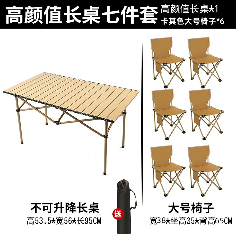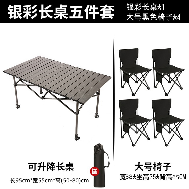 야외 피크닉 접이식 테이블과 의자 티타늄 스틸 계란 롤 테이블과 의자 세트 캠핑 테이블 휴대용 스톨 야시장 리프팅 테이블