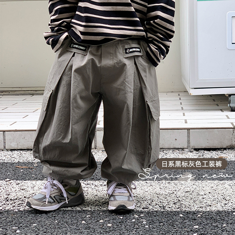 어린이 블루머 일본 느슨한 얇은 넓은 다리 바지 잘 생긴 회색 아기 바지스토어 가기