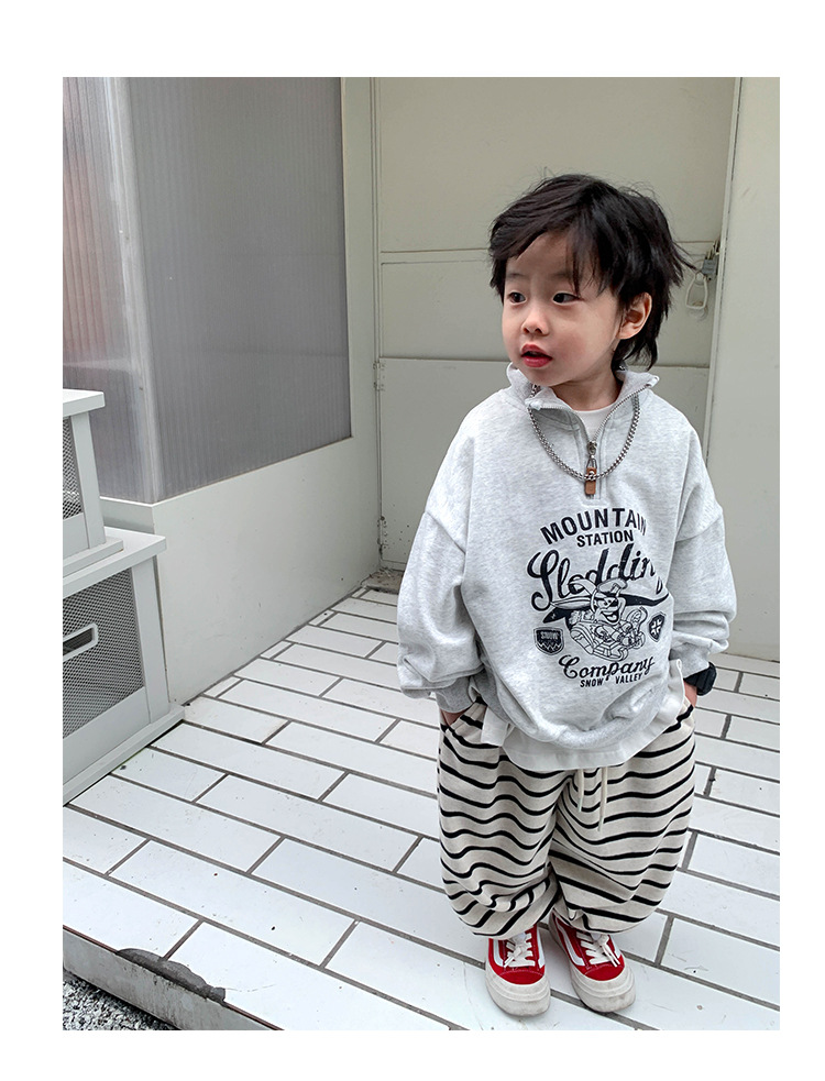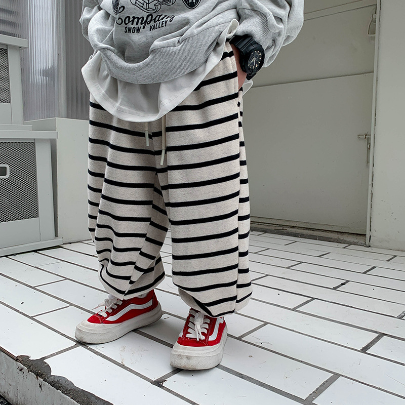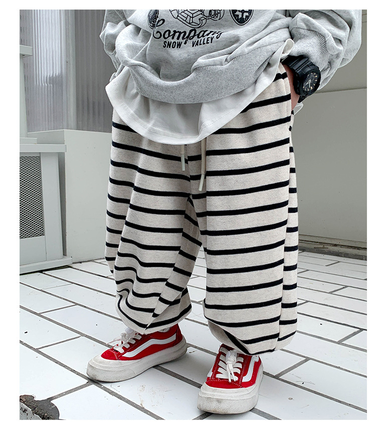 소년 바지 봄과 가을 느슨한 흑백 줄무늬 아기 어린이 스포츠 바지 소년 스웨트 팬츠 봄과 가을