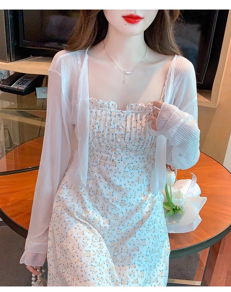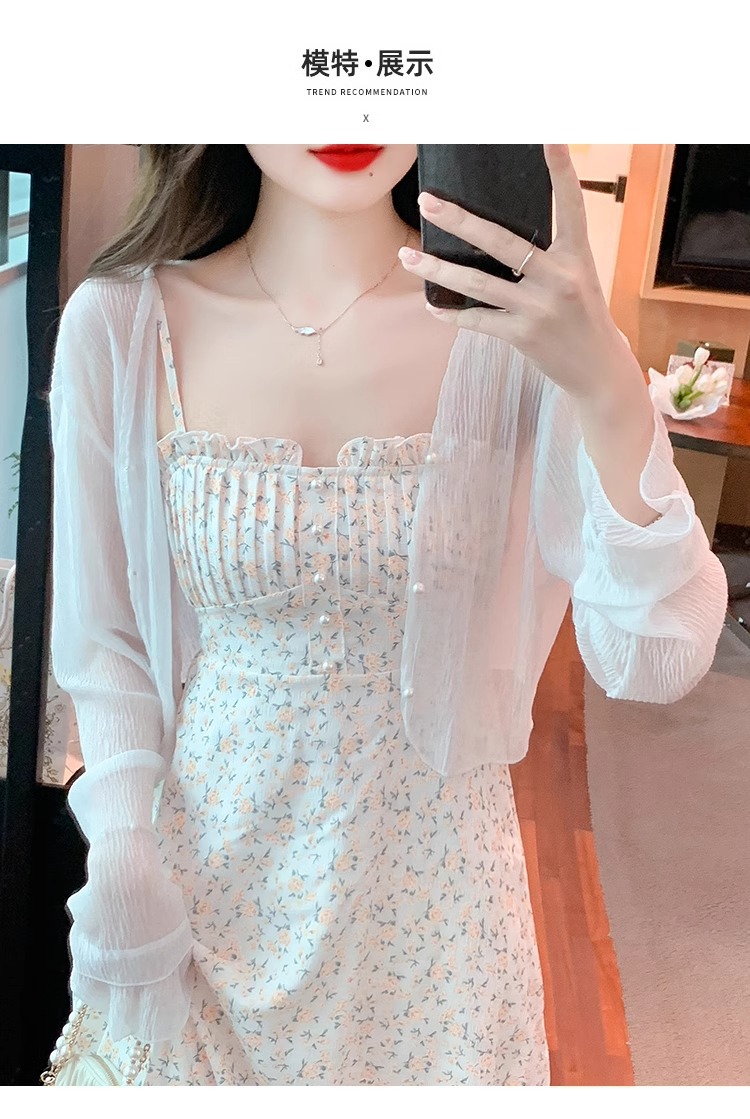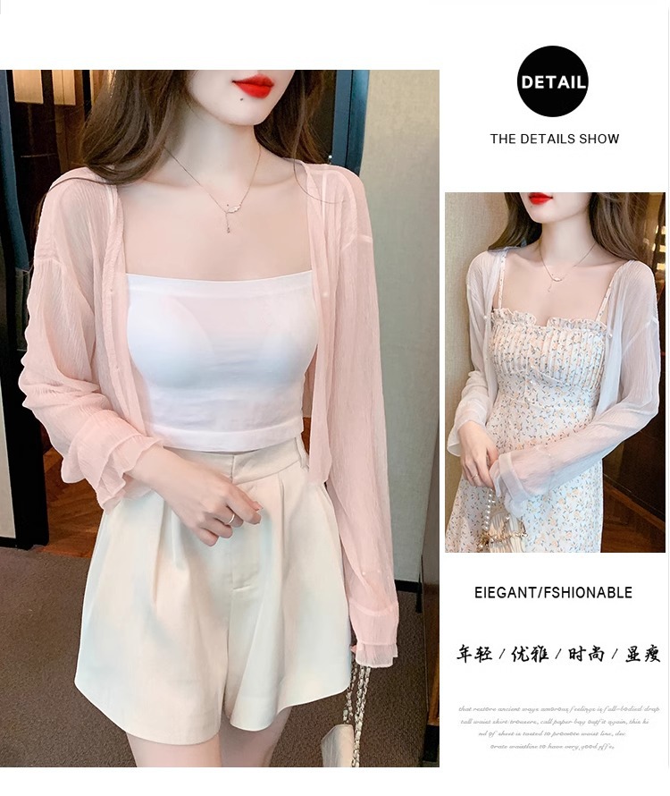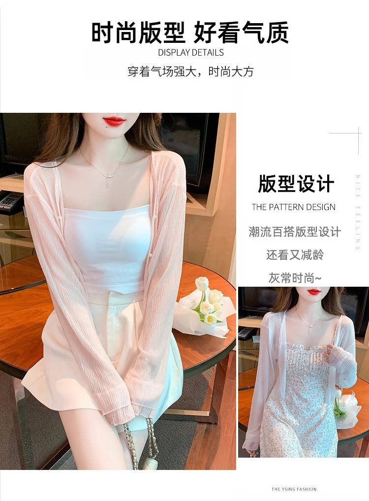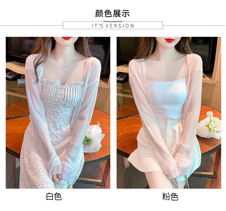 아이스 실크 쉬폰 카디건 태양 보호 의류 여성용 여름 얇은 목도리 코트, 서스펜더 스커트 아우터 블라우스 쇼트 탑스토어 가기