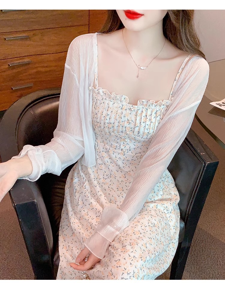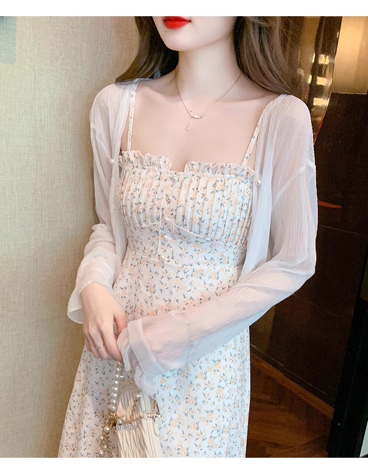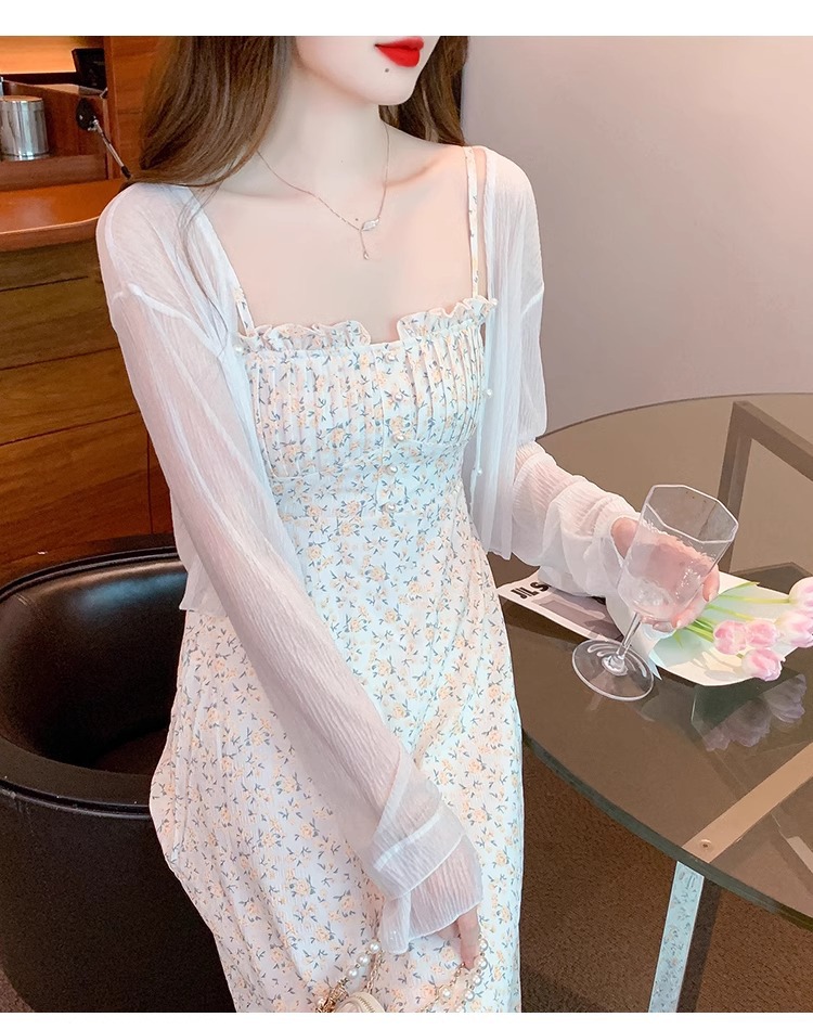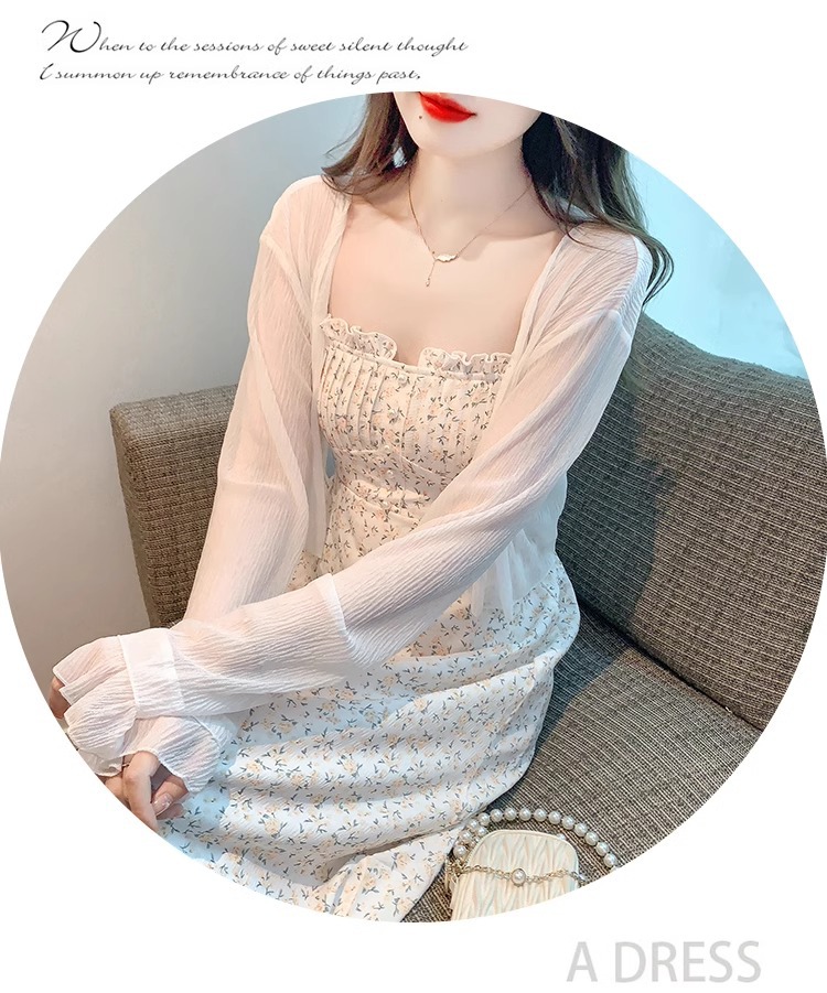 아이스 실크 쉬폰 카디건 태양 보호 의류 여성용 여름 얇은 목도리 코트, 서스펜더 스커트 아우터 블라우스 쇼트 탑스토어 가기