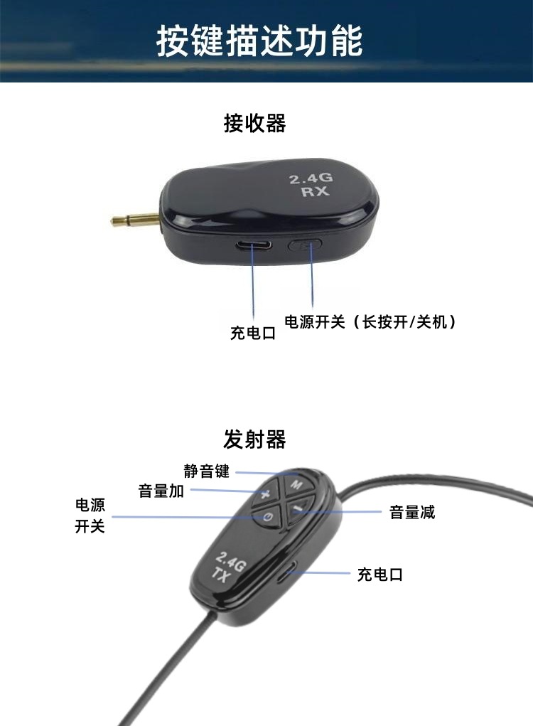 • [중국어 버전] 검정색 2.4G 무선 마이크(배터리 수명 15시간/무선 20- 30m )