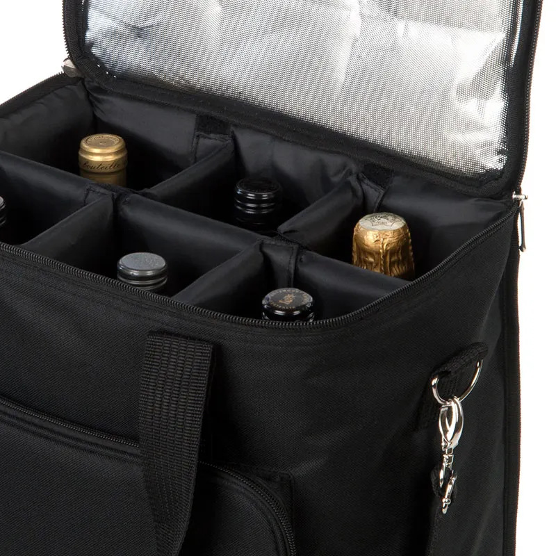 손잡이와 조절 가능한 어깨 끈 피크닉 가방이 달린 쿨러 가방을 들고 절연 된 6 병 와인 토트 트롤리