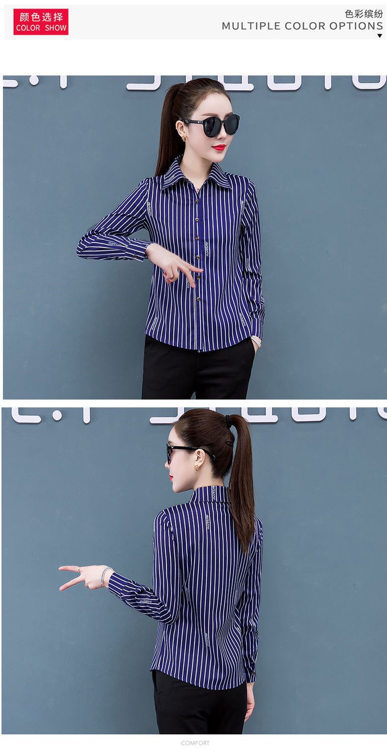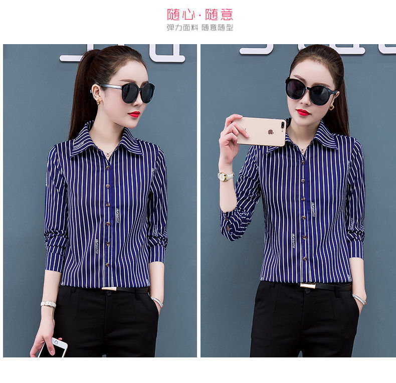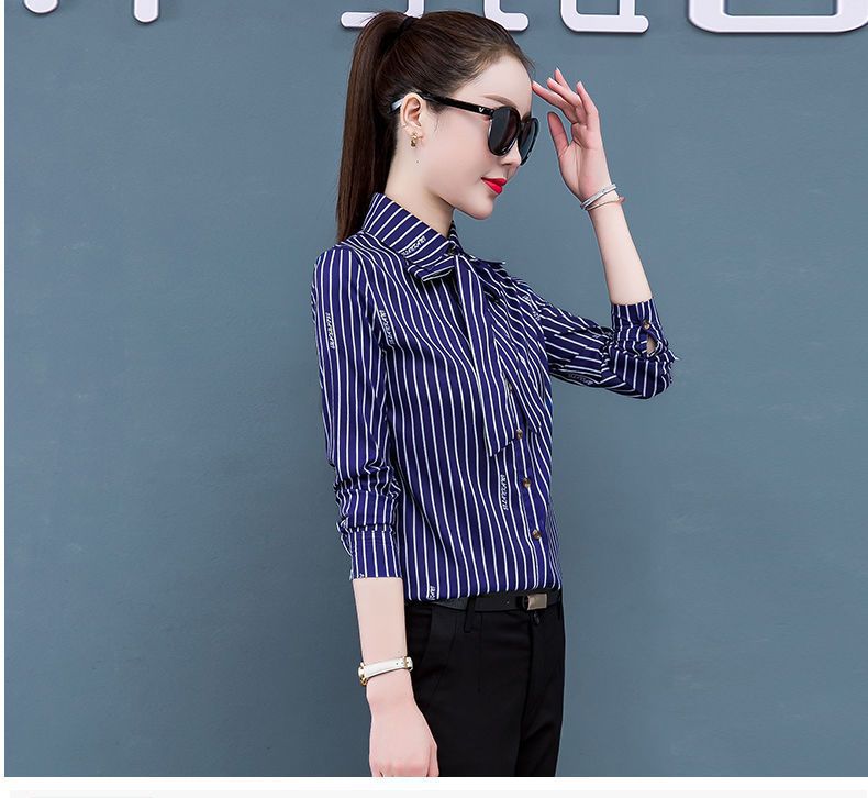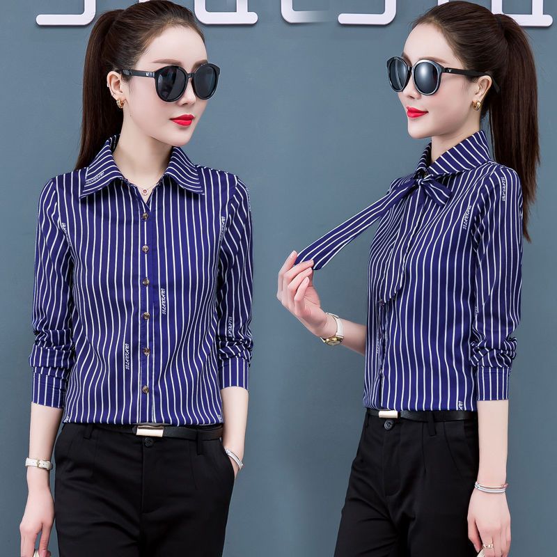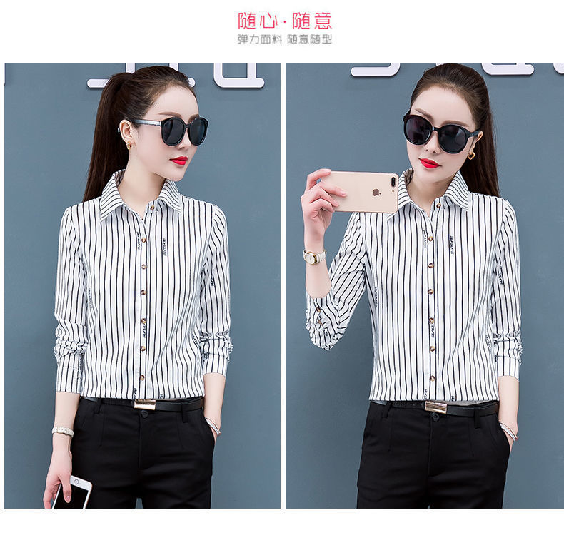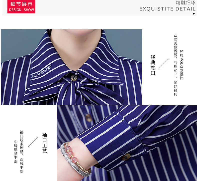 금색과 한국 줄무늬 셔츠 여성 긴팔 2024 봄 새로운 한국식 전문 흰색 셔츠 여성 쉬폰 셔츠 수리 무료 배송스토어 가기