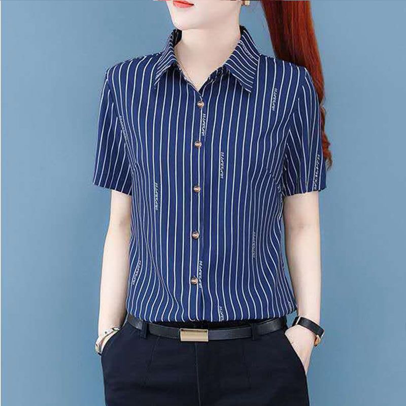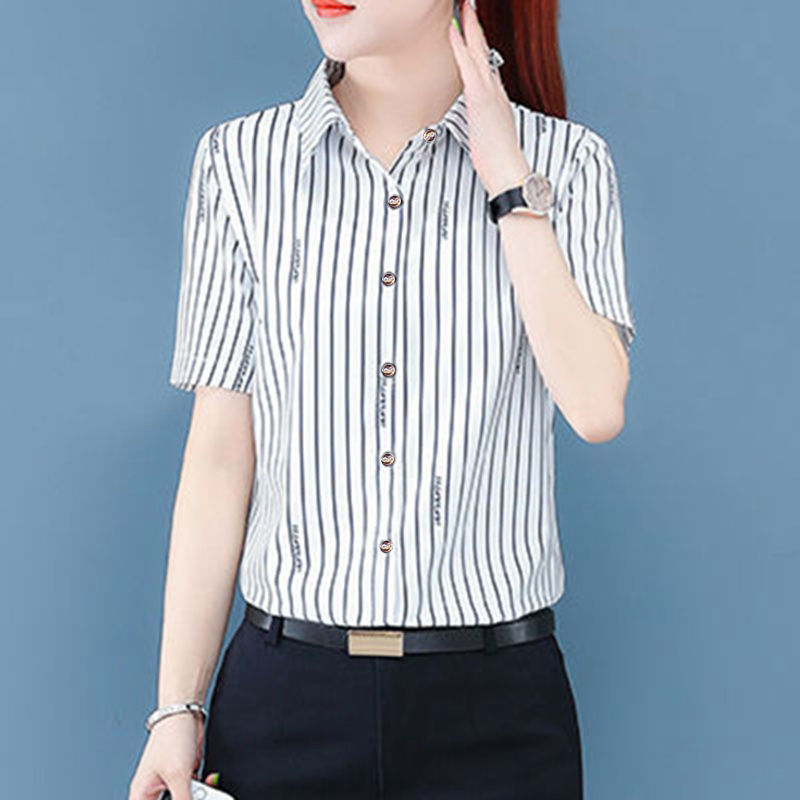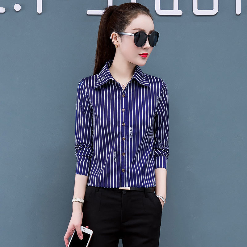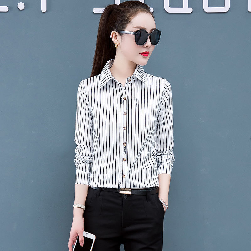 금색과 한국 줄무늬 셔츠 여성 긴팔 2024 봄 새로운 한국식 전문 흰색 셔츠 여성 쉬폰 셔츠 수리 무료 배송