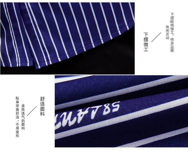• 1316 [긴 소매] 파란색 줄무늬 + 칼라 장식