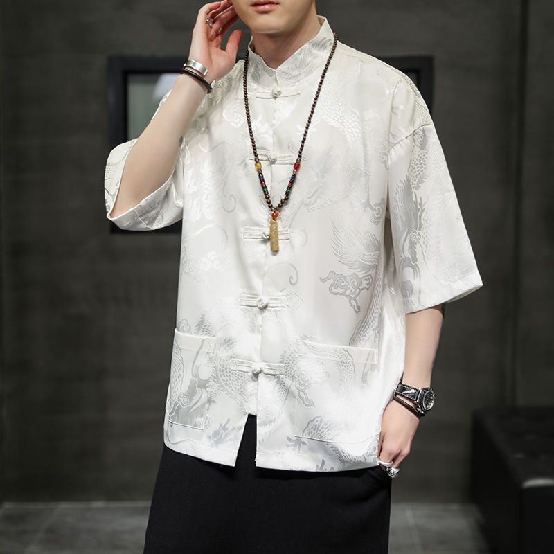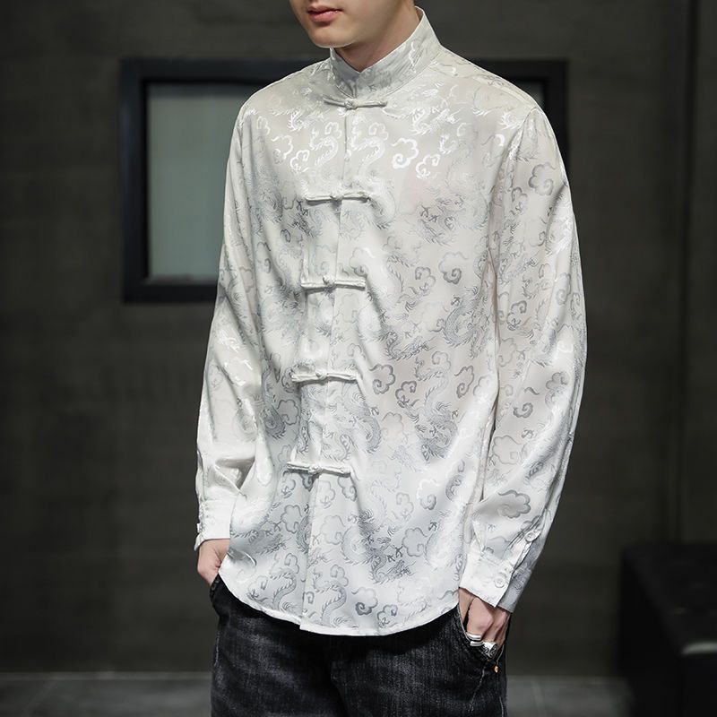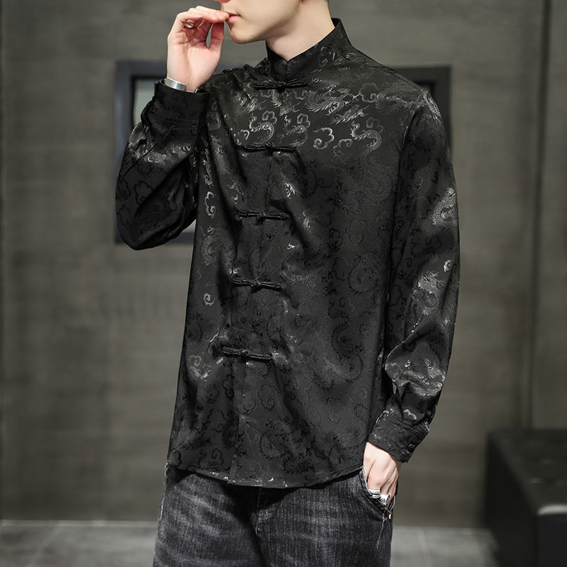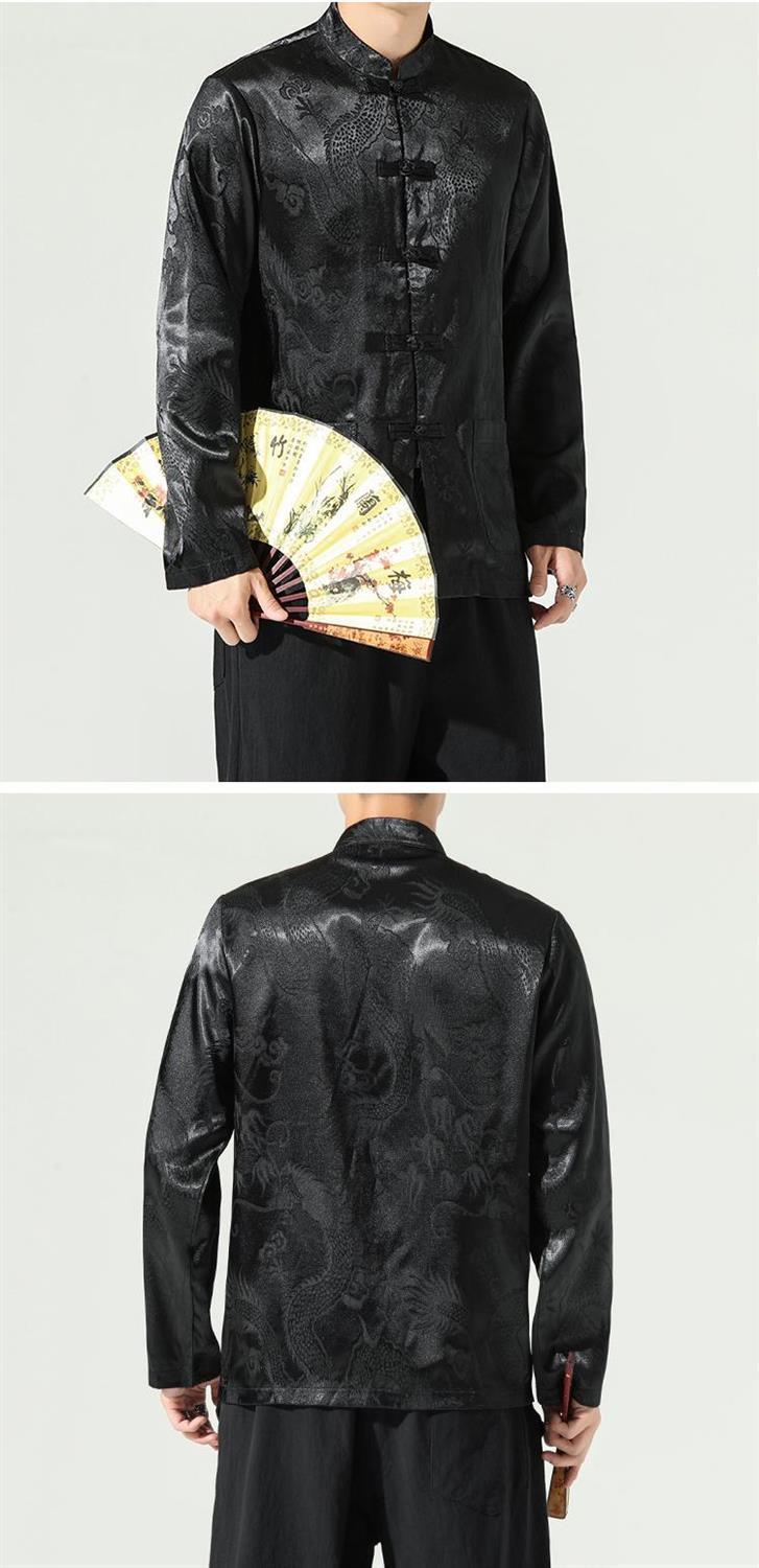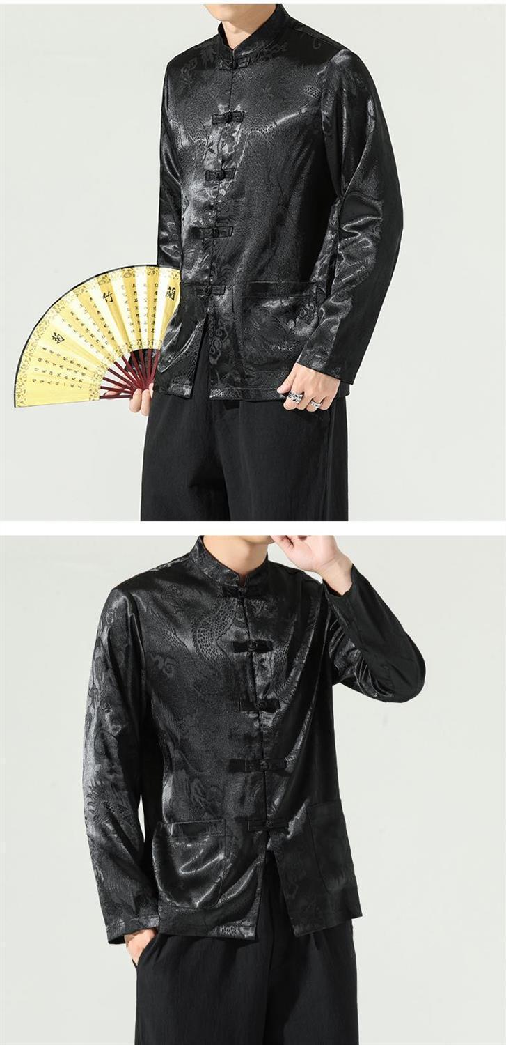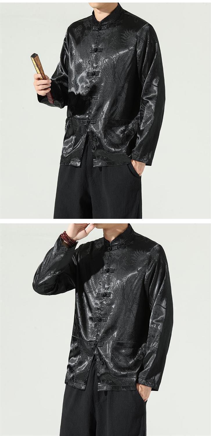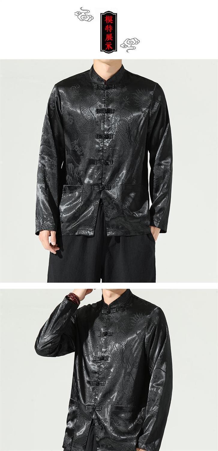 탕 세트 남성 실크 재킷 플러스 사이즈 느슨한 중국 스타일 스탠드 칼라 재킷 패션 브랜드 복고풍 중국 스타일 남성 의류스토어 가기