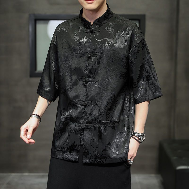 唐装男丝绸外套大码宽松中式立领夹克潮牌复古风中山装中国风男装