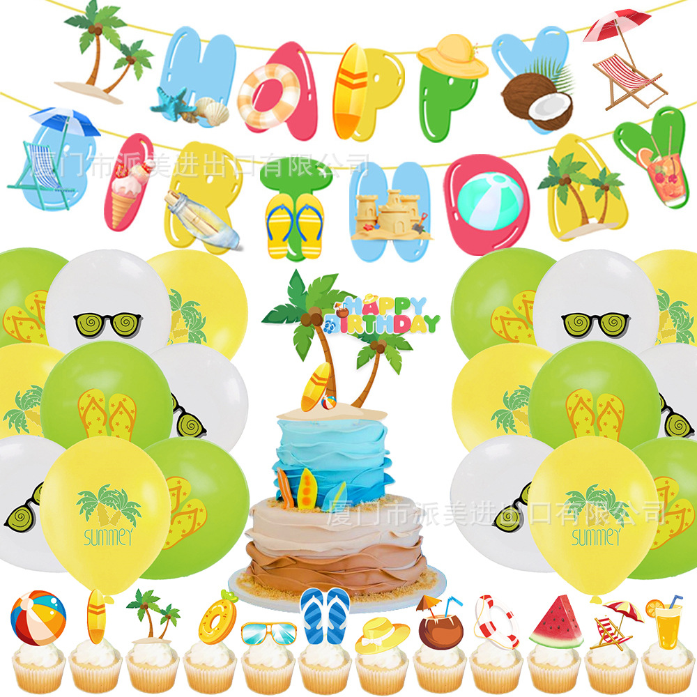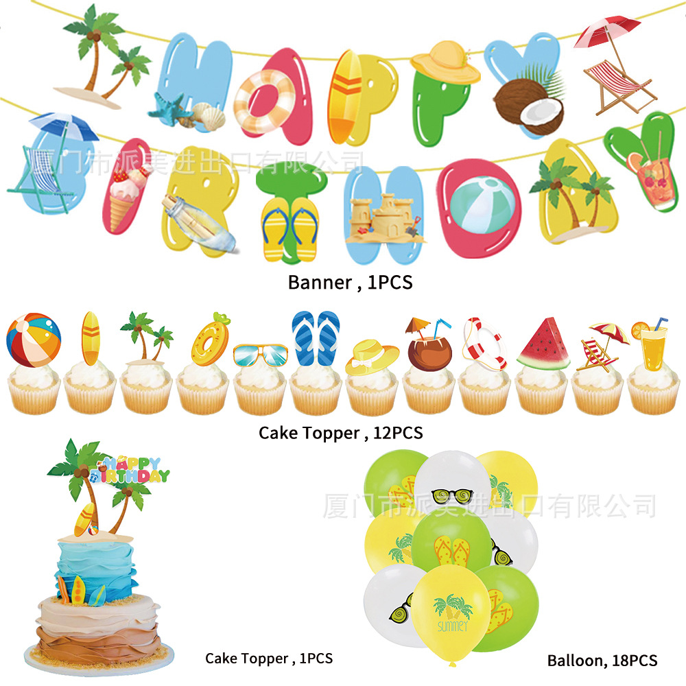 套装包括:1条拉旗+18个乳胶气球+12个蛋糕插旗+1个蛋糕插牌