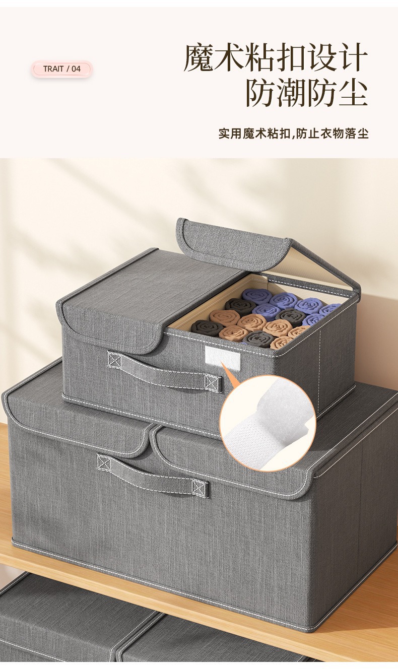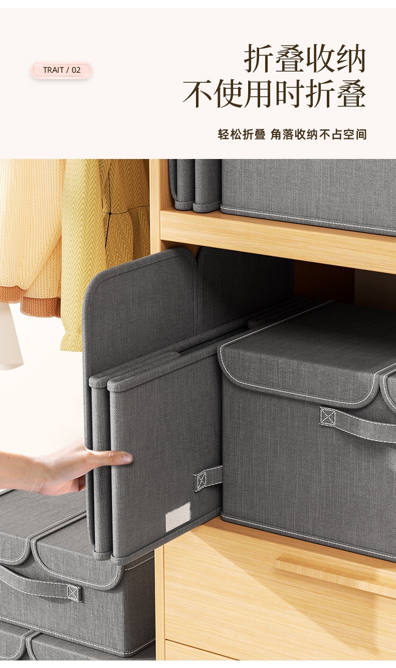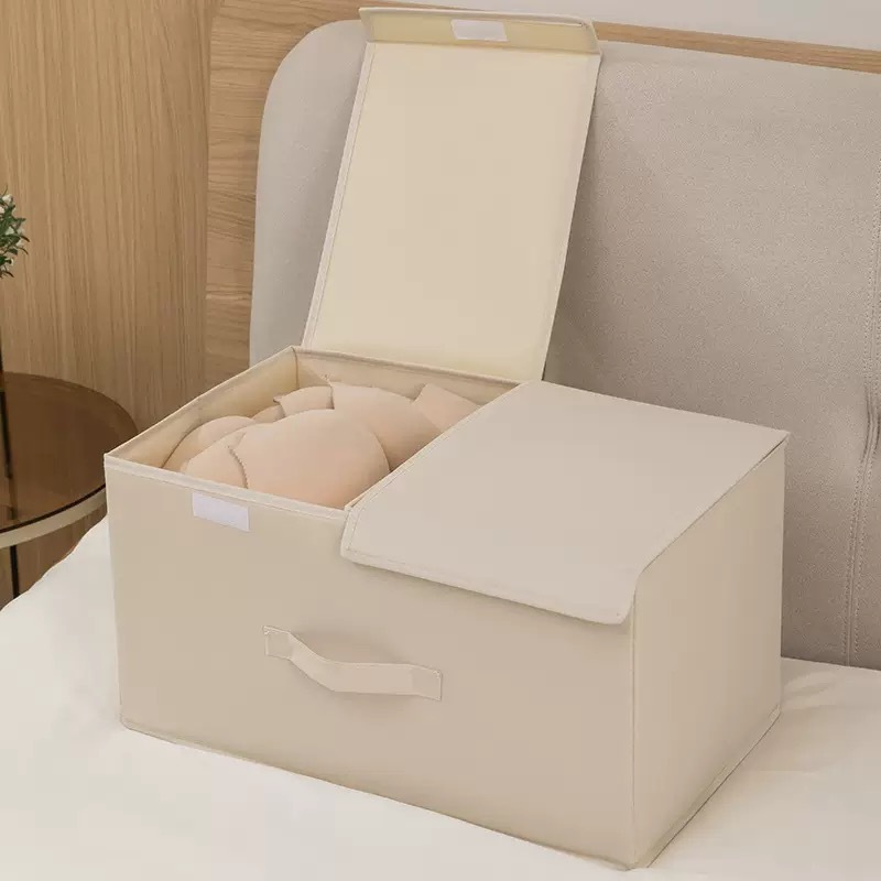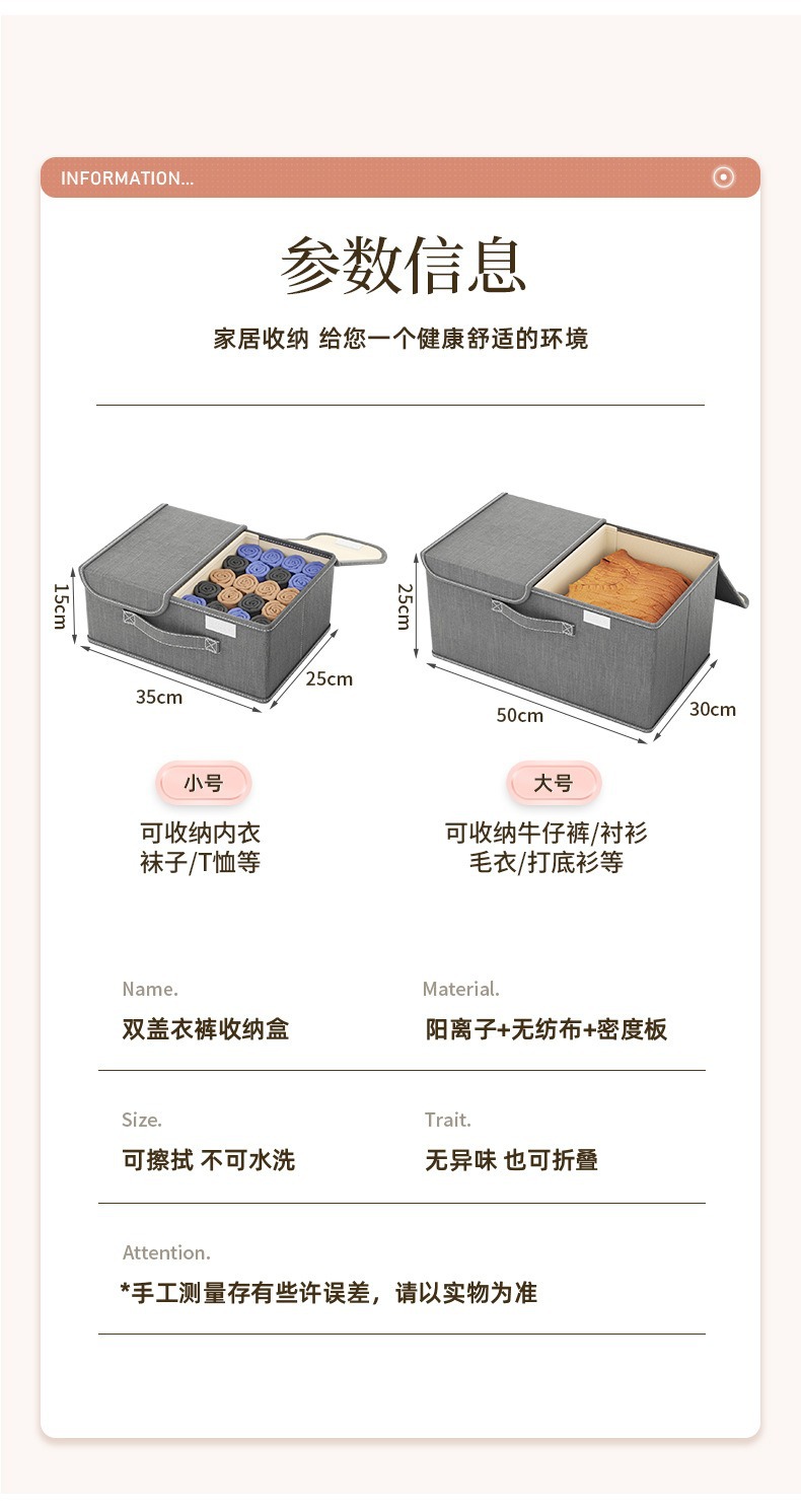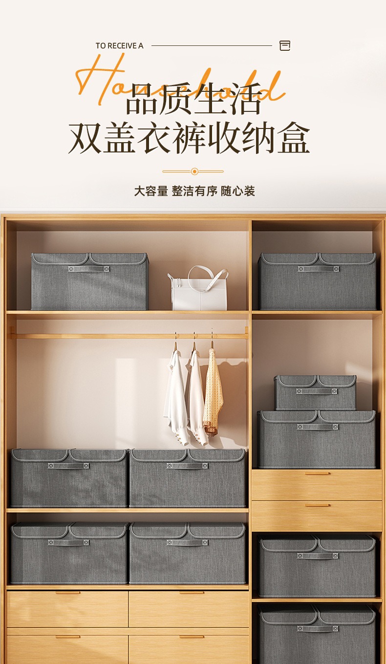 양이온 더블 커버 의류 보관 상자 접이식 세척 가능한 저장 상자 가정용 옷장 속옷 보관 상자