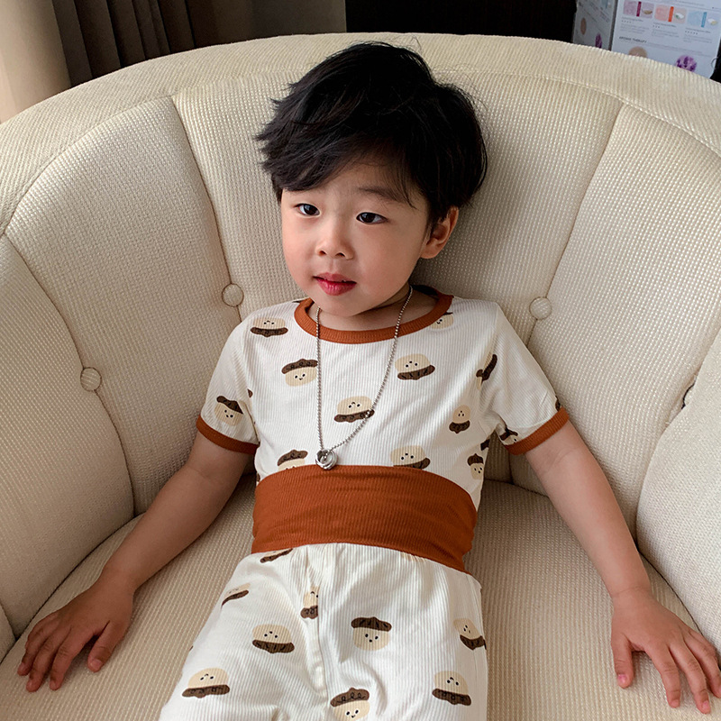 남학생 잠옷 여름 어린이 아이스 실크 마스크 에어컨 옷 아기 모달 세트 아기 홈웨어