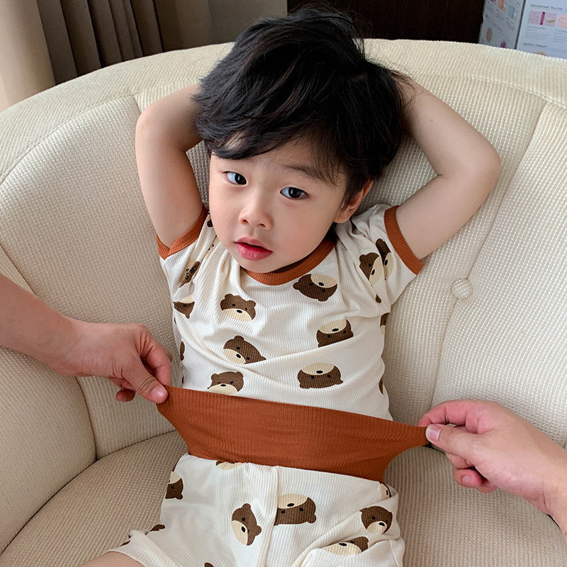 남학생 잠옷 여름 어린이 아이스 실크 마스크 에어컨 옷 아기 모달 세트 아기 홈웨어스토어 가기