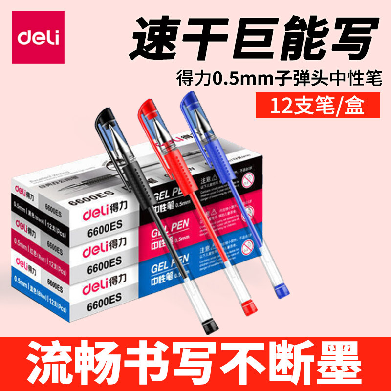 델리 젤 펜 6600ES 서명 펜 탄소 물 펜 0.5mm 사무실 펜 학생 브러시 펜 문구 도매스토어 가기